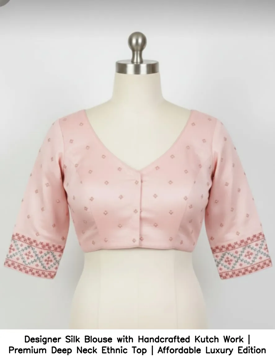 Designer Silk Blouse with Handcrafted Kutch Work | Premium Deep Neck Ethnic Top | Affordable Luxury Edition Features and Benefits
