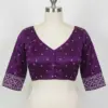 This half pattu designer blouse comes in sizes XL, XXL, and 3XL. You can browse our collection for more options. Experience the beauty of this ethnic top in rich colors that suit any occasion.