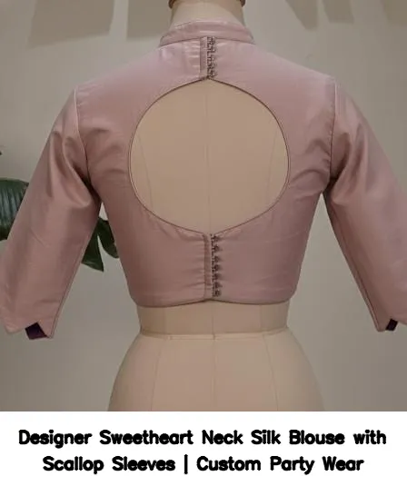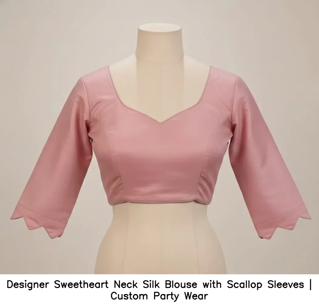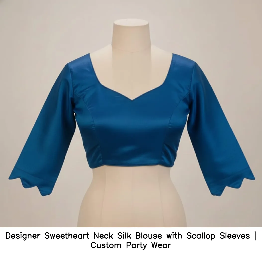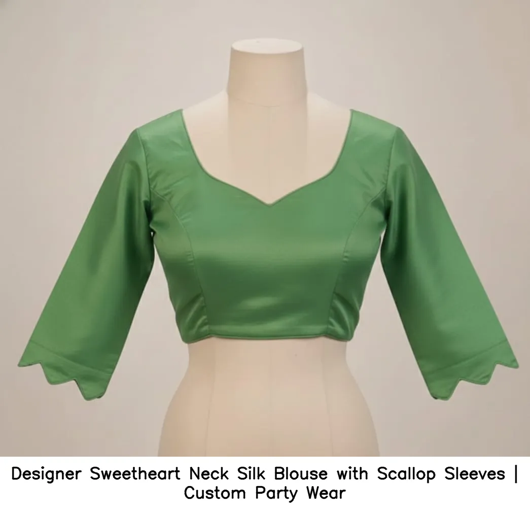 Designer Sweetheart Neck Silk Blouse with Scallop Sleeves | Custom Party Wear Features and Benefits