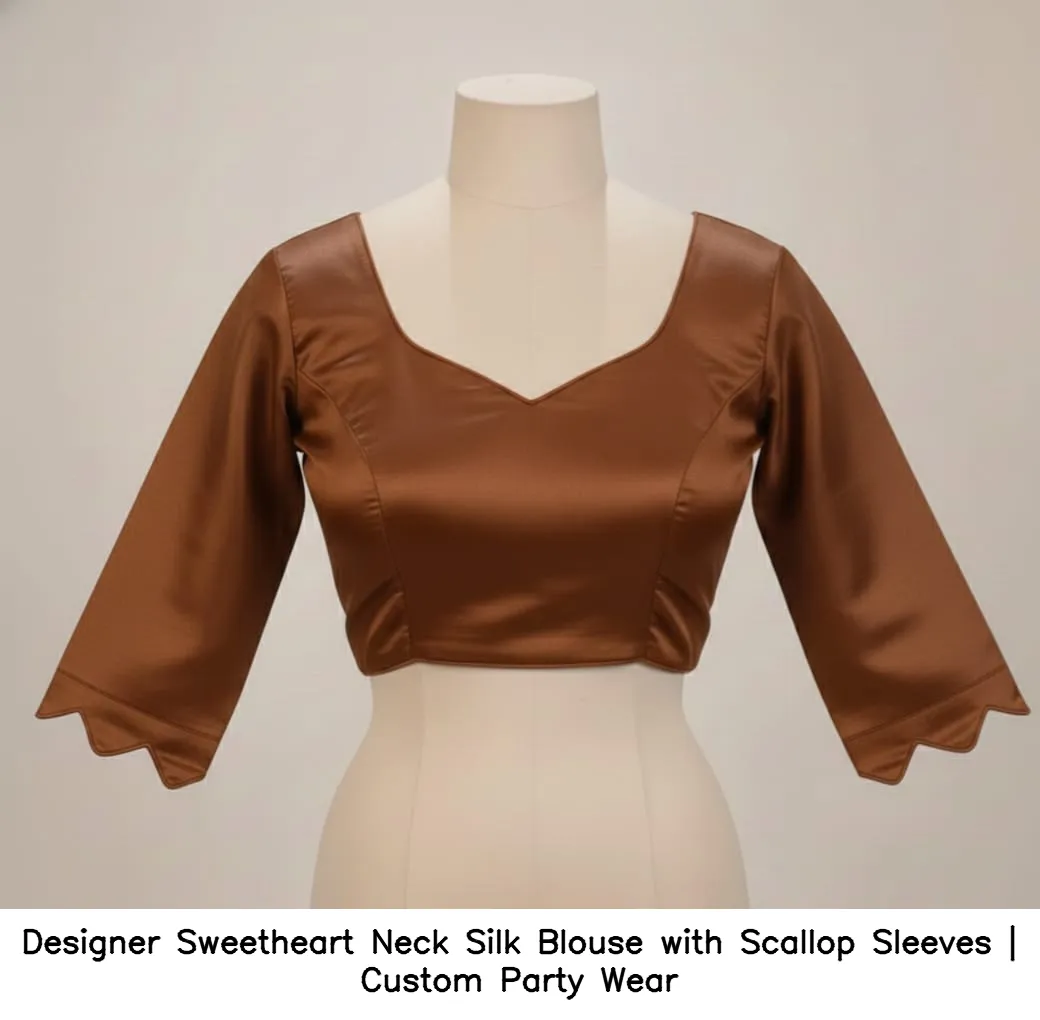 Why Choose Designer Sweetheart Neck Silk Blouse with Scallop Sleeves | Custom Party Wear?