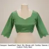 Product Name: ​​​Designer Sweetheart Neck Silk Blouse with Scallop Sleeves | Custom Party Wear