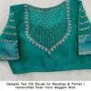 Designer Teal Silk Blouse for Weddings & Parties | Handcrafted Silver Floral Maggam Work