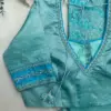 To maintain the beauty of your Designer Turquoise Silk Blouse – Aari Work V-Neckline & Matching Lotus Latkans, hand wash in cold water. Avoid bleach and do not wring. Iron on a low setting to keep the fabric looking pristine.