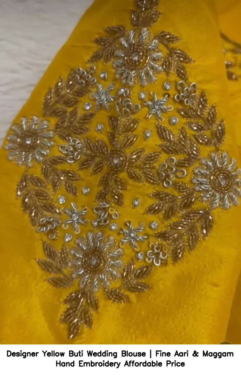 Why Choose Designer Yellow Buti Wedding Blouse | Fine Aari & Maggam Hand Embroidery – Affordable Price?