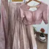 Product Name: Dusty Rose Metallic Silk Lehenga Choli – Designer Scalloped Neck Blouse with Zari Embroidery for Weddings
