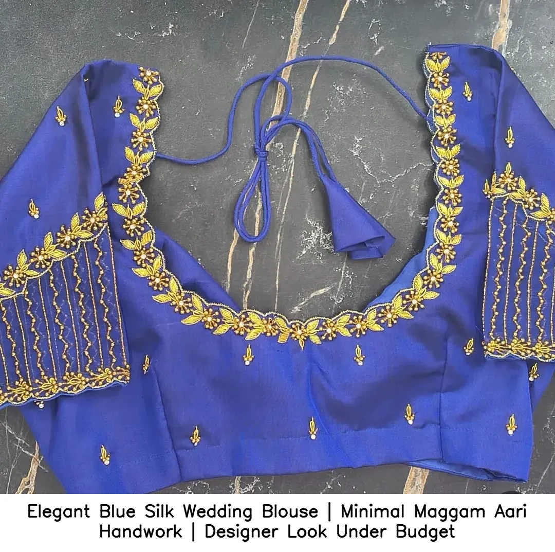 Why Choose Elegant Blue Silk Wedding Blouse | Minimal Maggam Aari Handwork | Designer Look Under Budget?