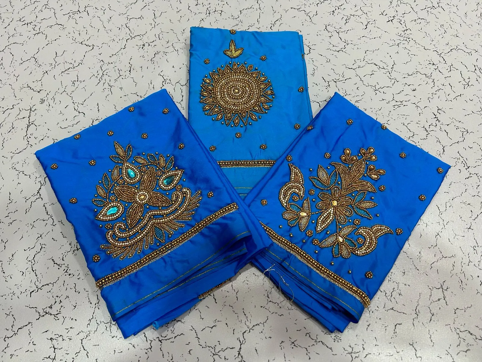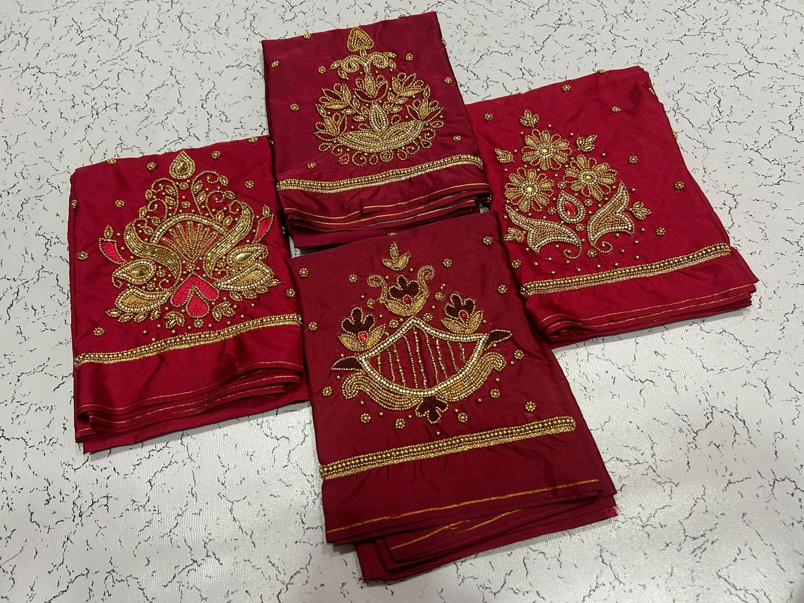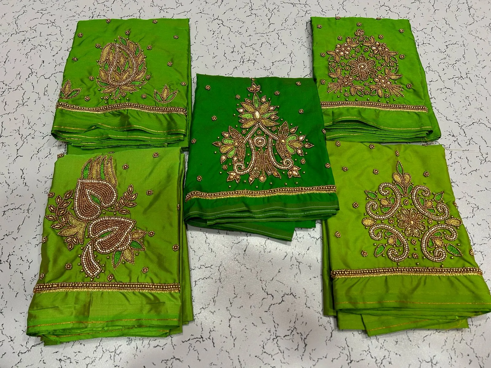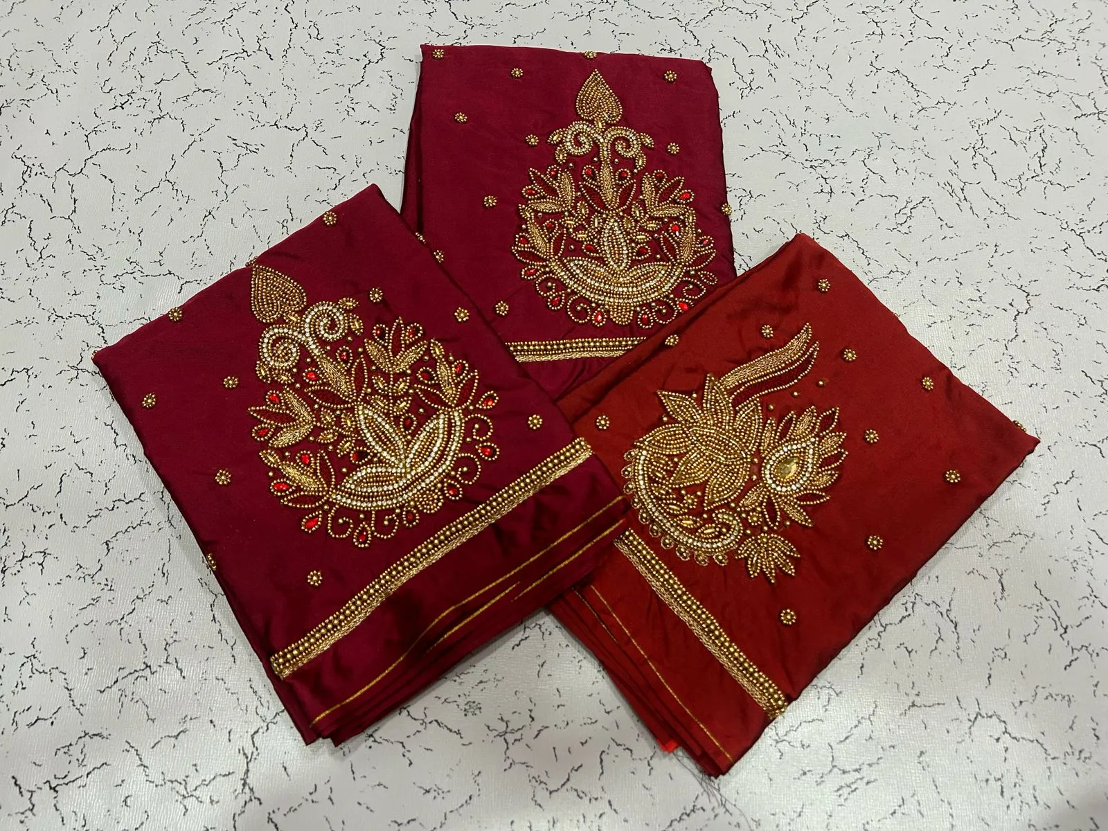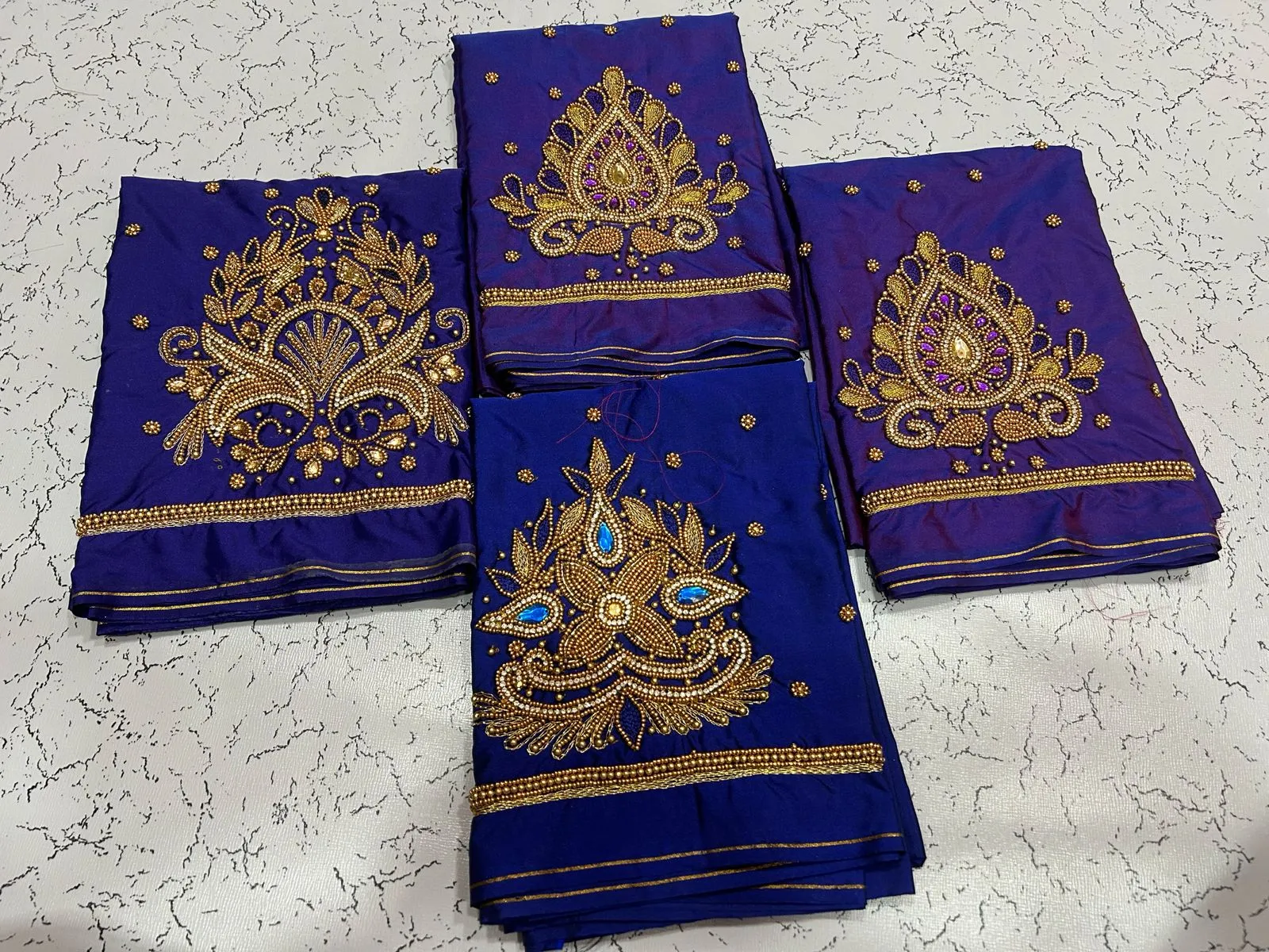 Stunning Raw Silk with Maggam Work blouse. Crafted for wedding and festive wear, pairs beautifully with silk sarees and lehengas.