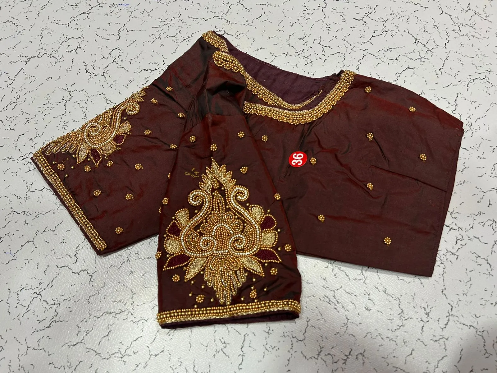 Elegant Dark Brown Aari Work Blouse Ready to Wear Muhurtham Special