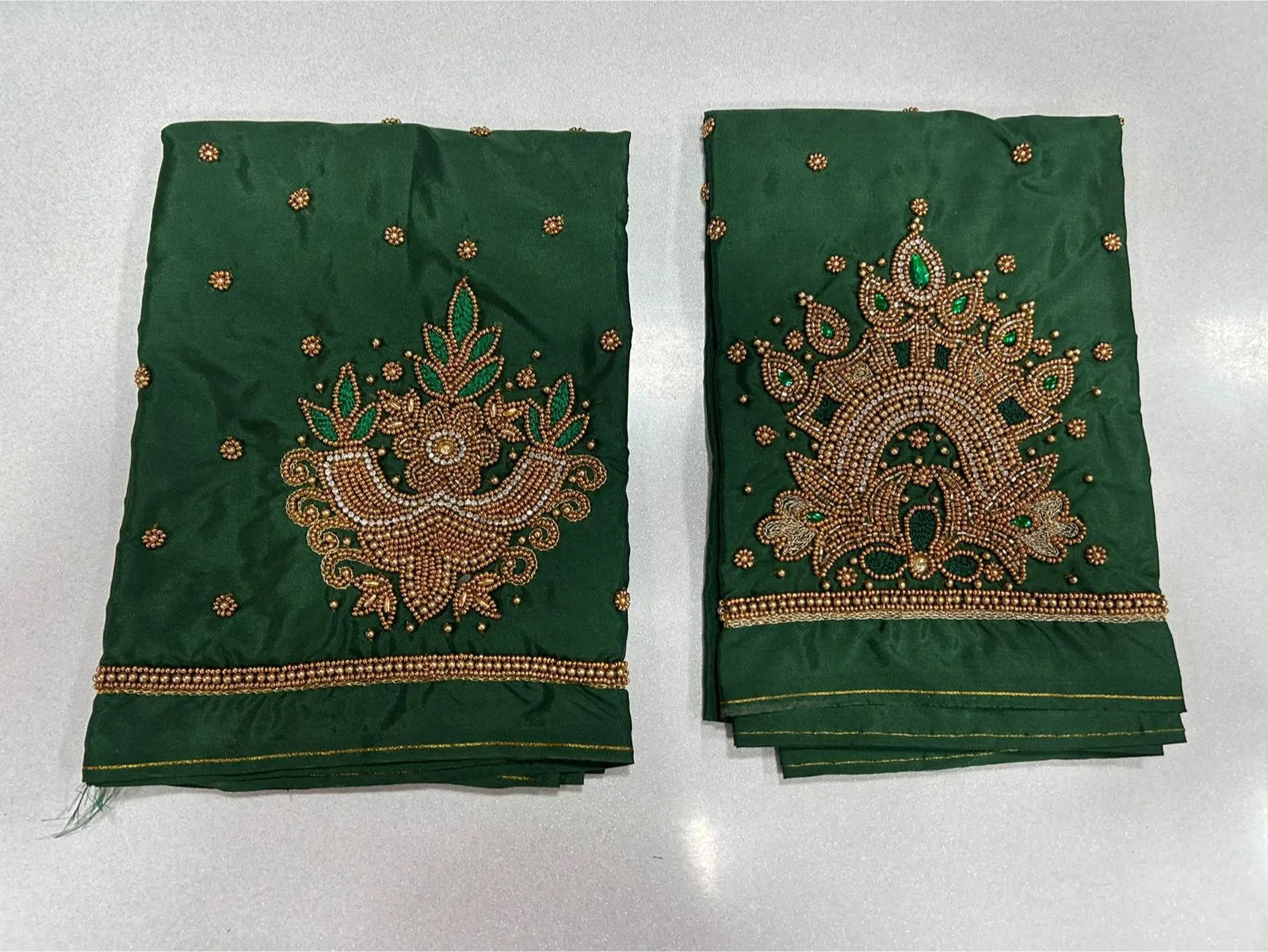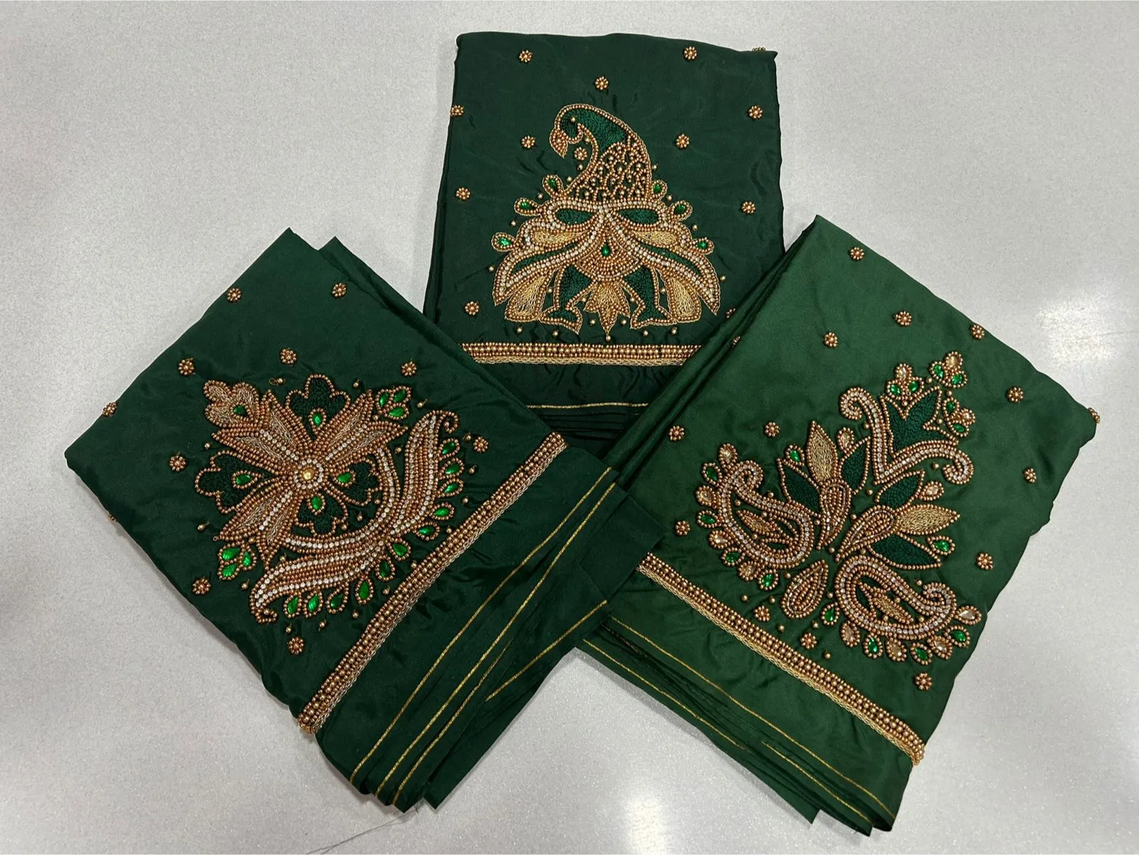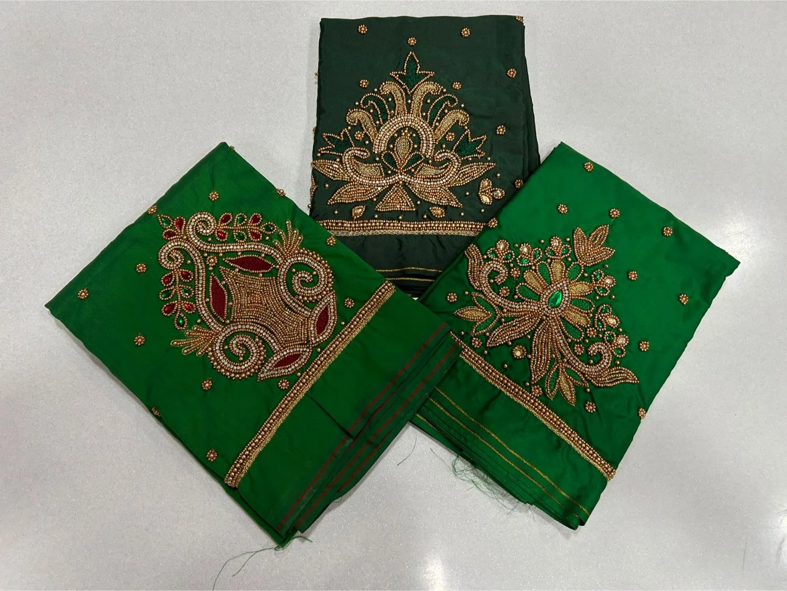 Q: What is the material quality of the Green Designer Bridal Blouse – Grand Wedding Look at Exclusive Offer?