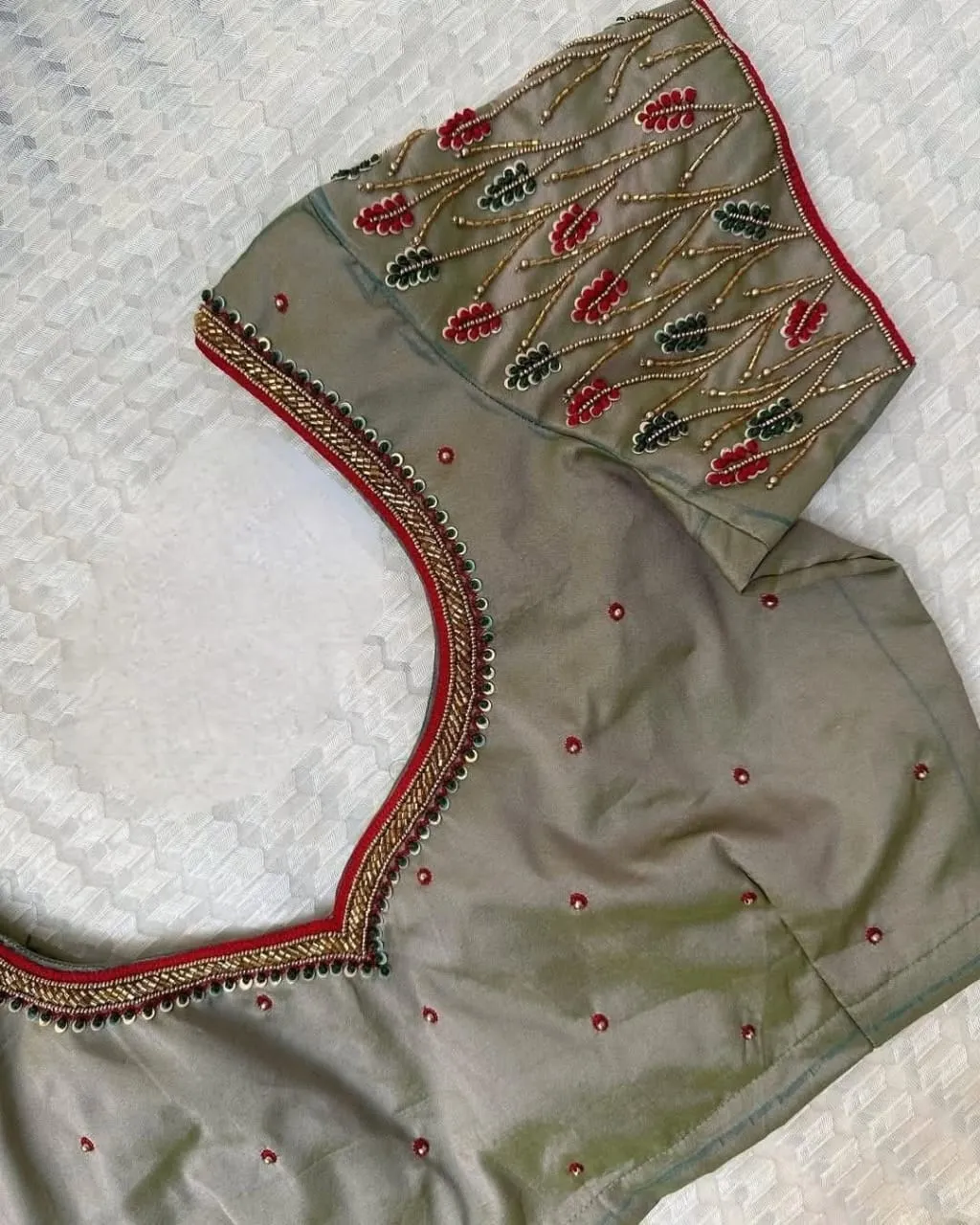 Elegant Grey Thread Maggam Work Blouse Custom Size Designer Blouse at Budget Price