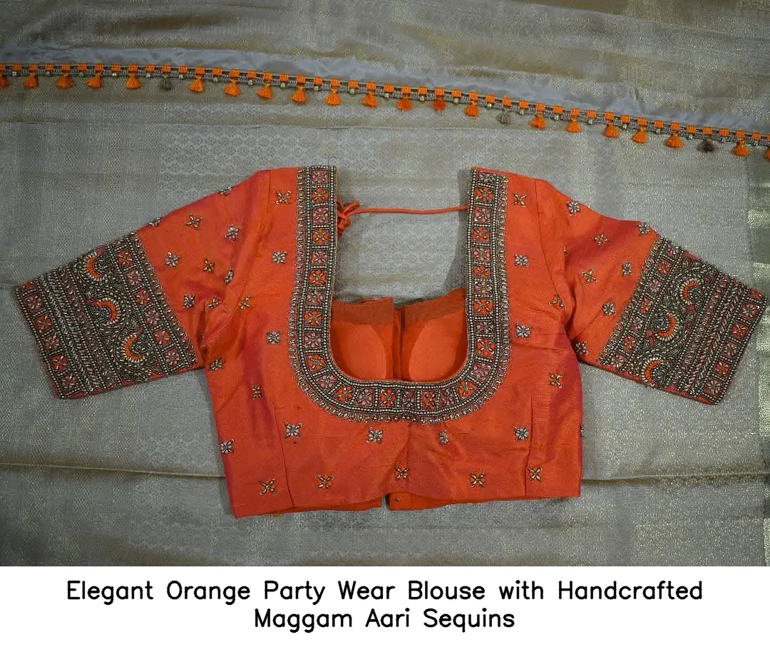 Why Choose Elegant Orange Party Wear Blouse with Handcrafted Maggam Aari Sequins?