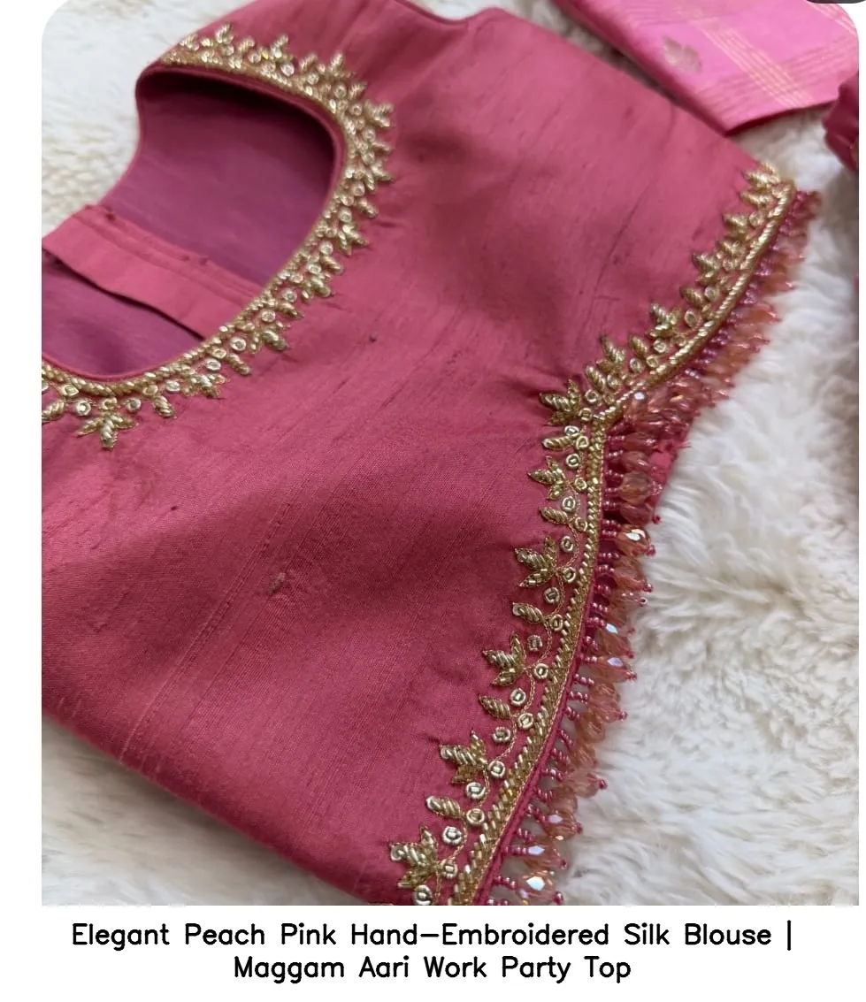Product Name: Elegant Peach Pink Hand-Embroidered Silk Blouse | Maggam Aari Work Party Top
