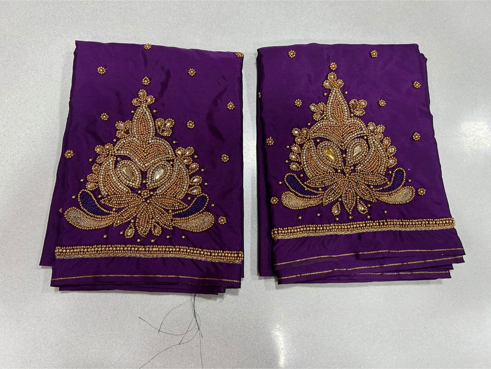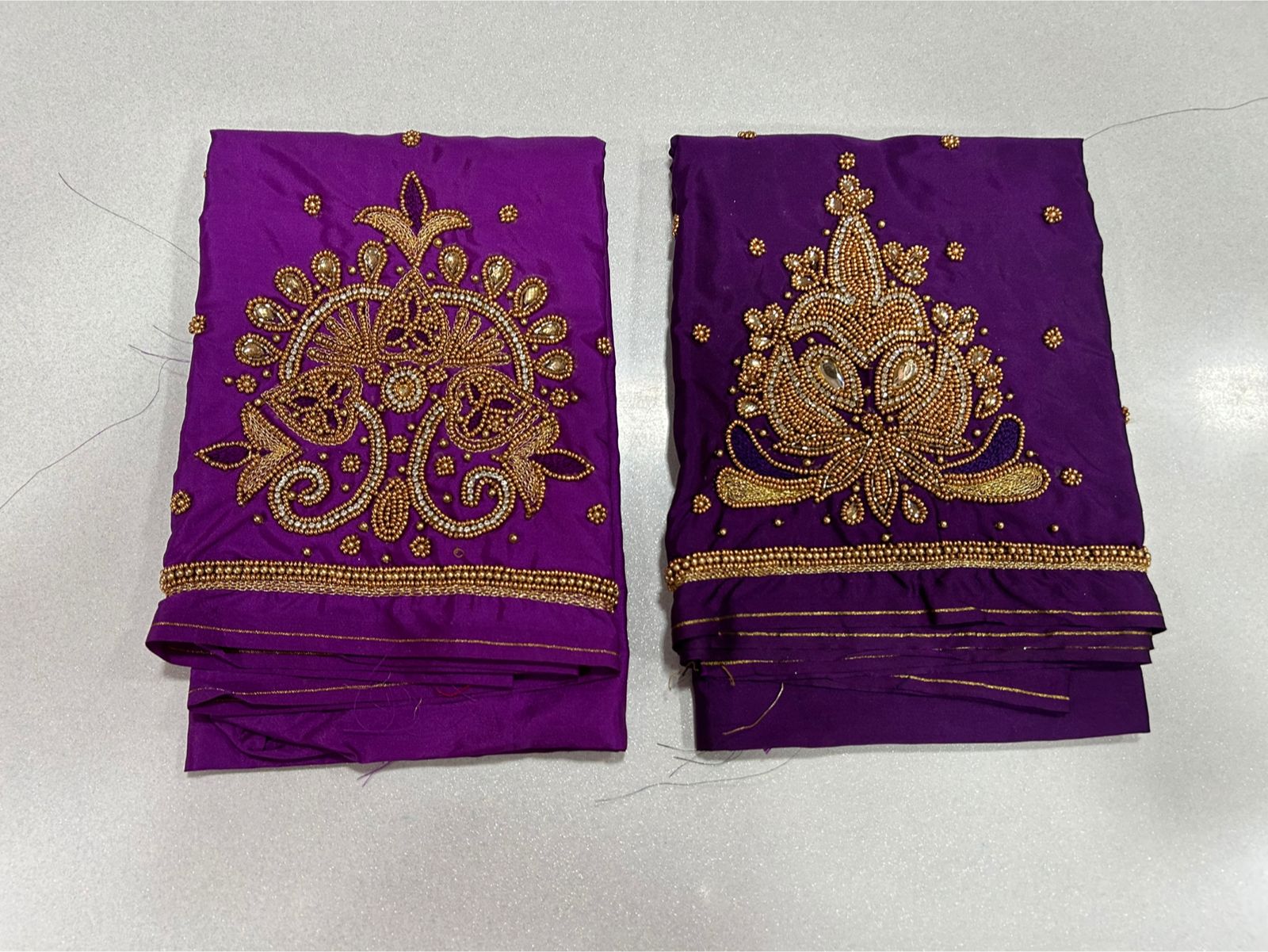 Q: What is the material quality of the Purple Aari Work Blouse on Festive Offer Designer Ethnic Wear for Weddings & Parties?