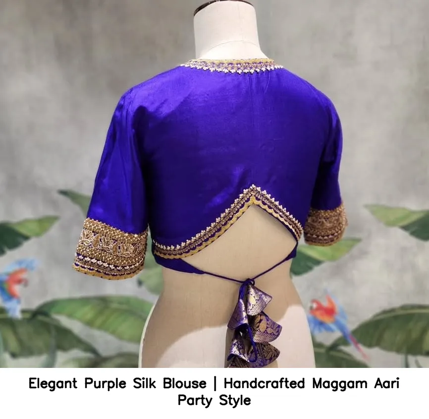 Elegant Purple Silk Blouse | Handcrafted Maggam Aari Party Style