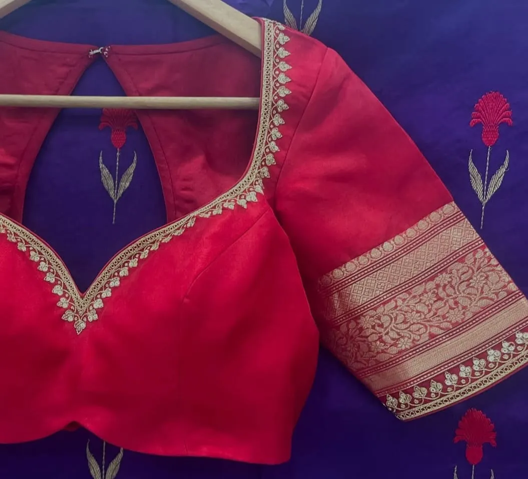 Q: How should I care for my Red Minimal Bridal Maggam Work Blouse?