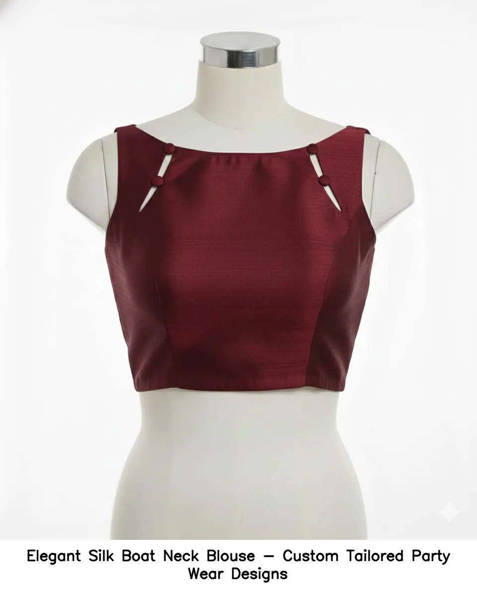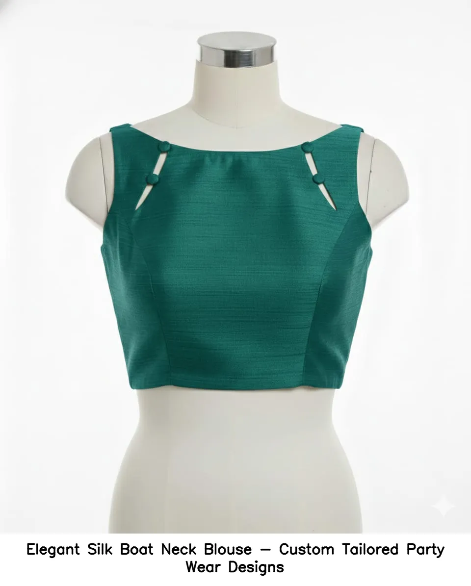 Elegant Silk Boat Neck Blouse – Custom Tailored Party Wear Designs