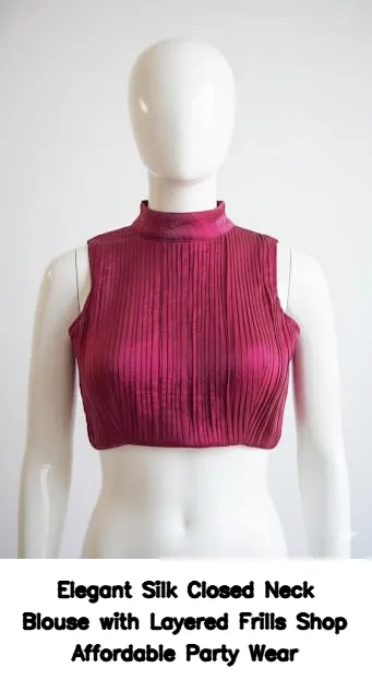 Elegant Silk Closed Neck Blouse with Layered Frills – Shop Affordable Party Wear