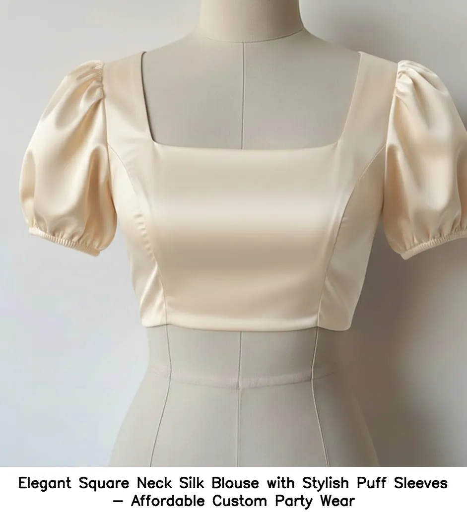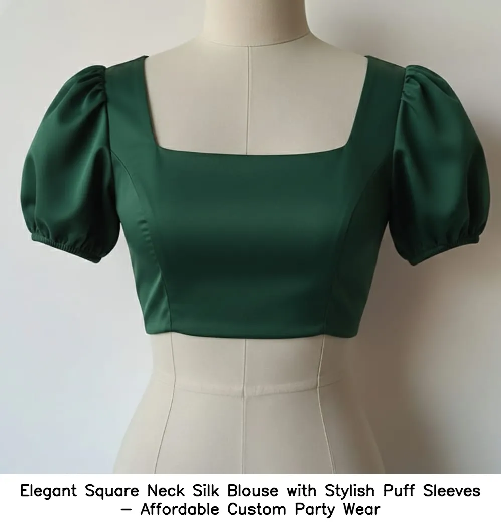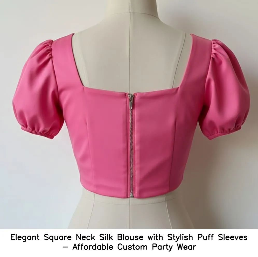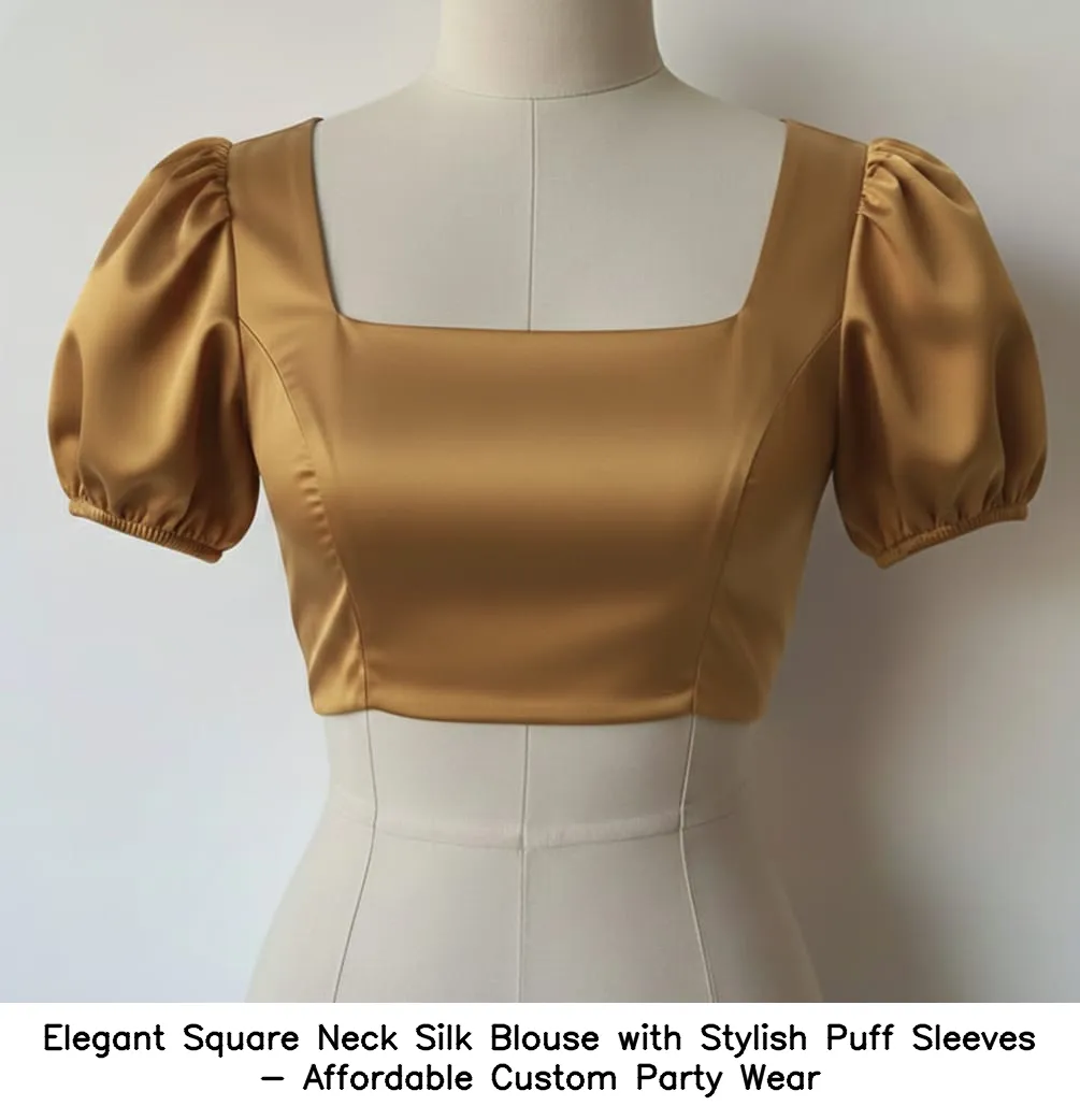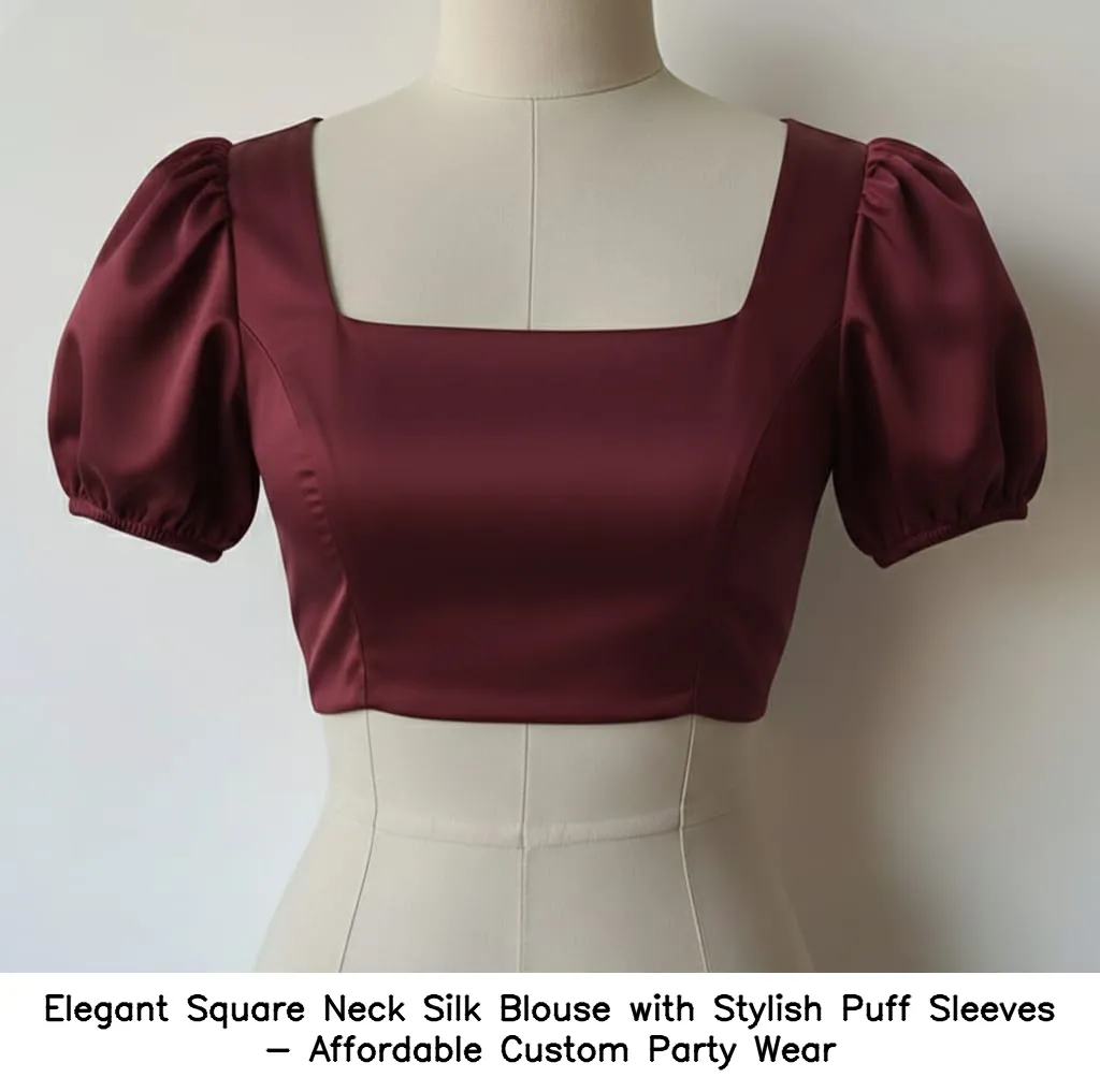 Why Choose Elegant Square Neck Silk Blouse with Stylish Puff Sleeves – Affordable Custom Party Wear?
