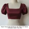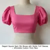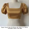 Product Name: ​​​Elegant Square Neck Silk Blouse with Stylish Puff Sleeves – Affordable Custom Party Wear