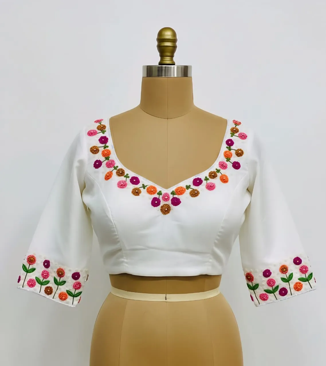 Product Name: Elegant White Thread Flower Maggam Work Blouse Budget-Friendly & Custom Sizes