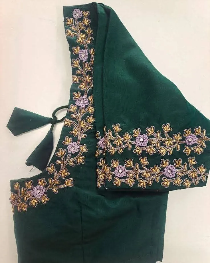 Exclusive Bottle Green Maggam Blouse for Weddings Custom Fit, Affordable Price
