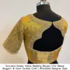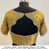 This Exclusive Golden Yellow Wedding Blouse is made from half pattu fabric. It is available in sizes XL, XXL, and 3XL. Available colors include Red, Pink, Blue, Purple, and Wine. For more options, browse our collection.