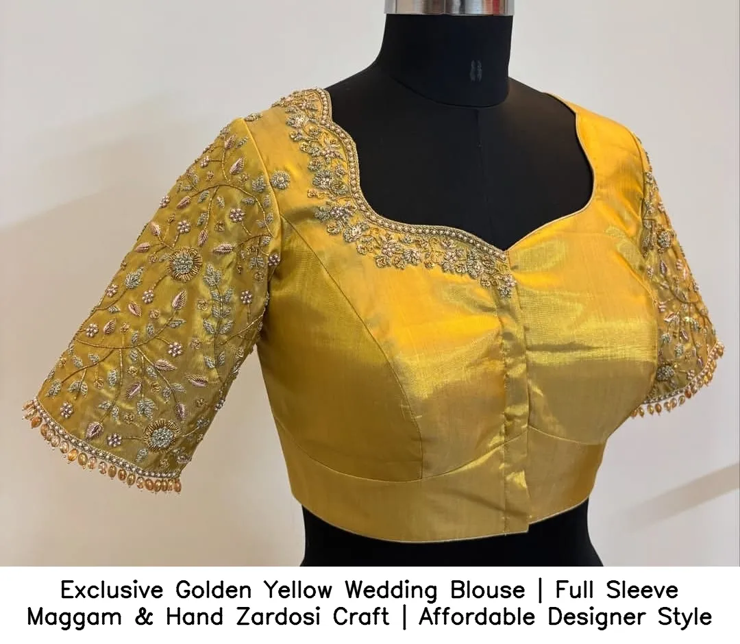 Why Choose Exclusive Golden Yellow Wedding Blouse | Full Sleeve Maggam & Hand Zardosi Craft | Affordable Designer Style?
