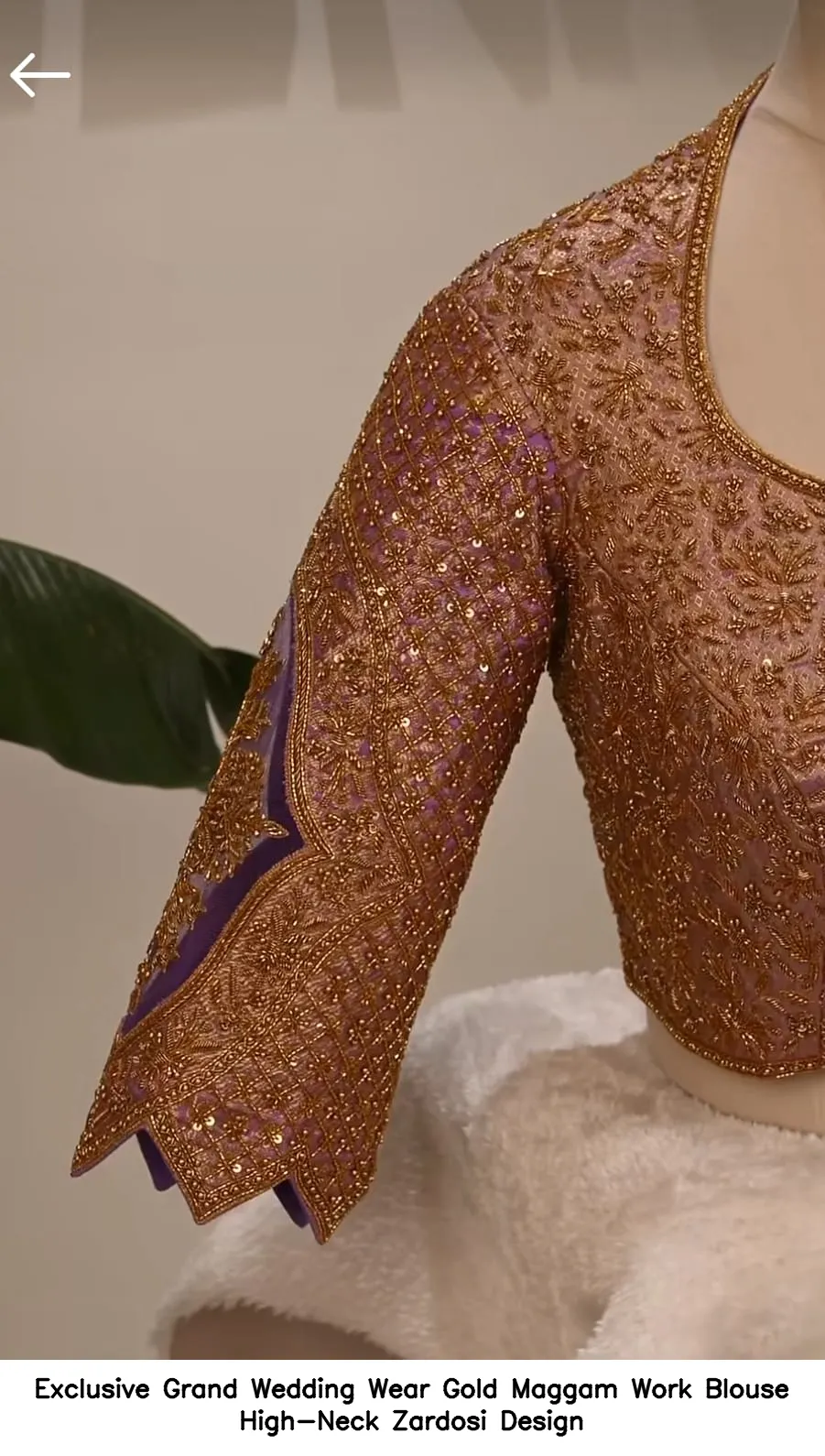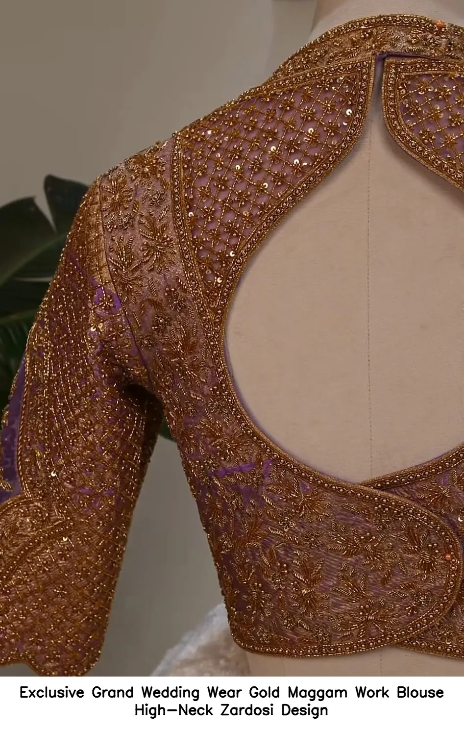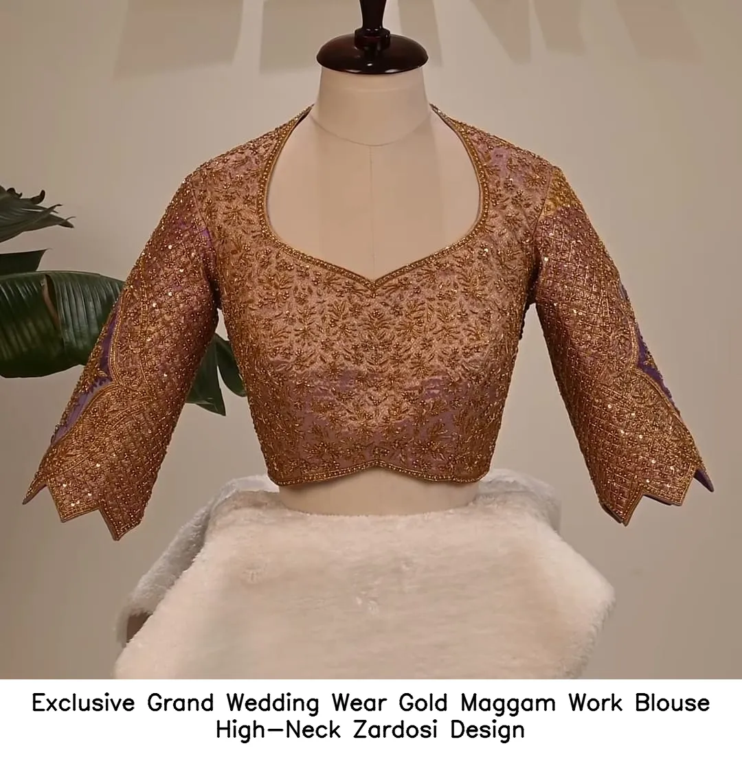 ​Exclusive Grand Wedding Wear Gold Maggam Work Blouse – High-Neck Zardosi Design