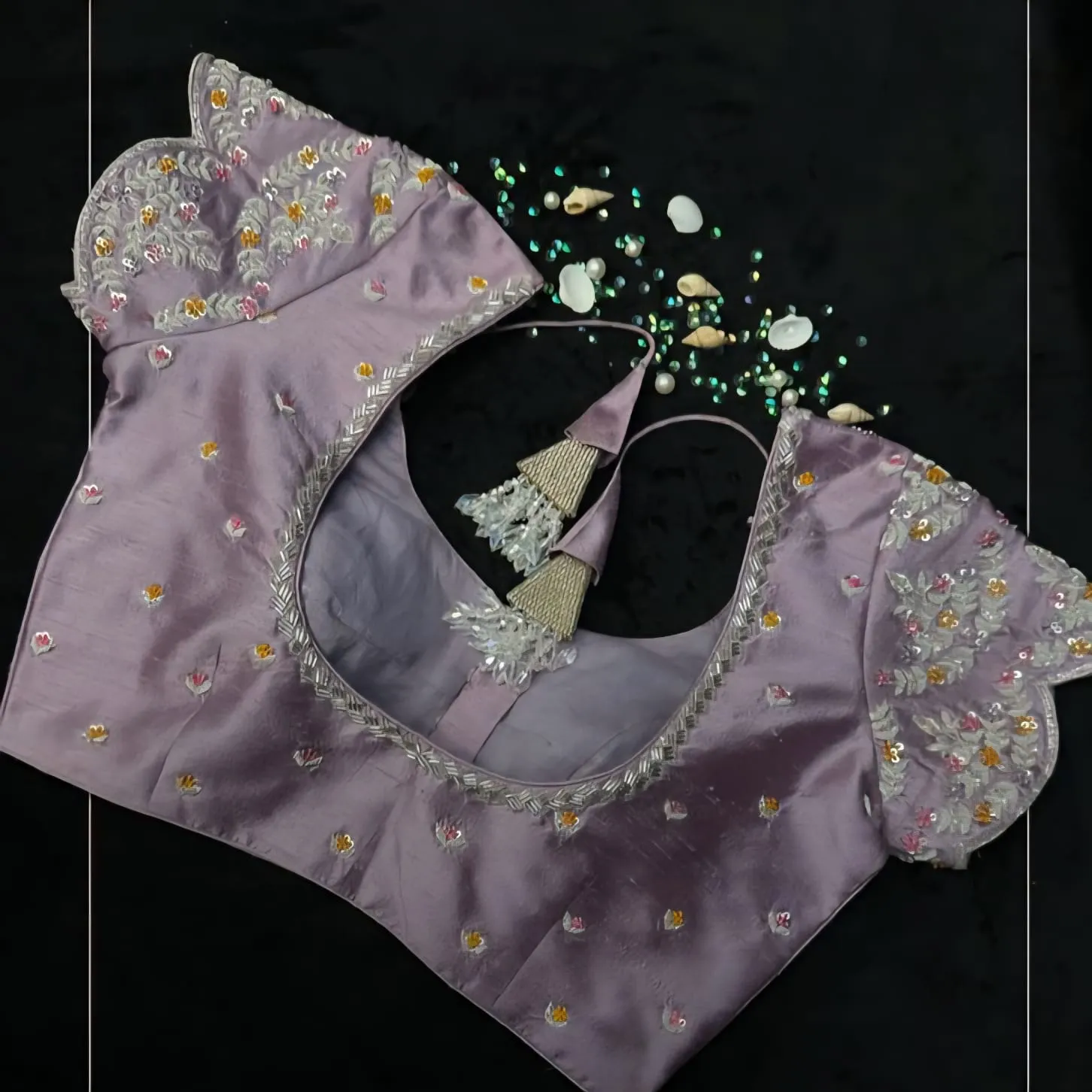 Product Name: Exclusive Lilac Bridal Maggam Work Blouse Elegant Cutwork Design at Affordable Price