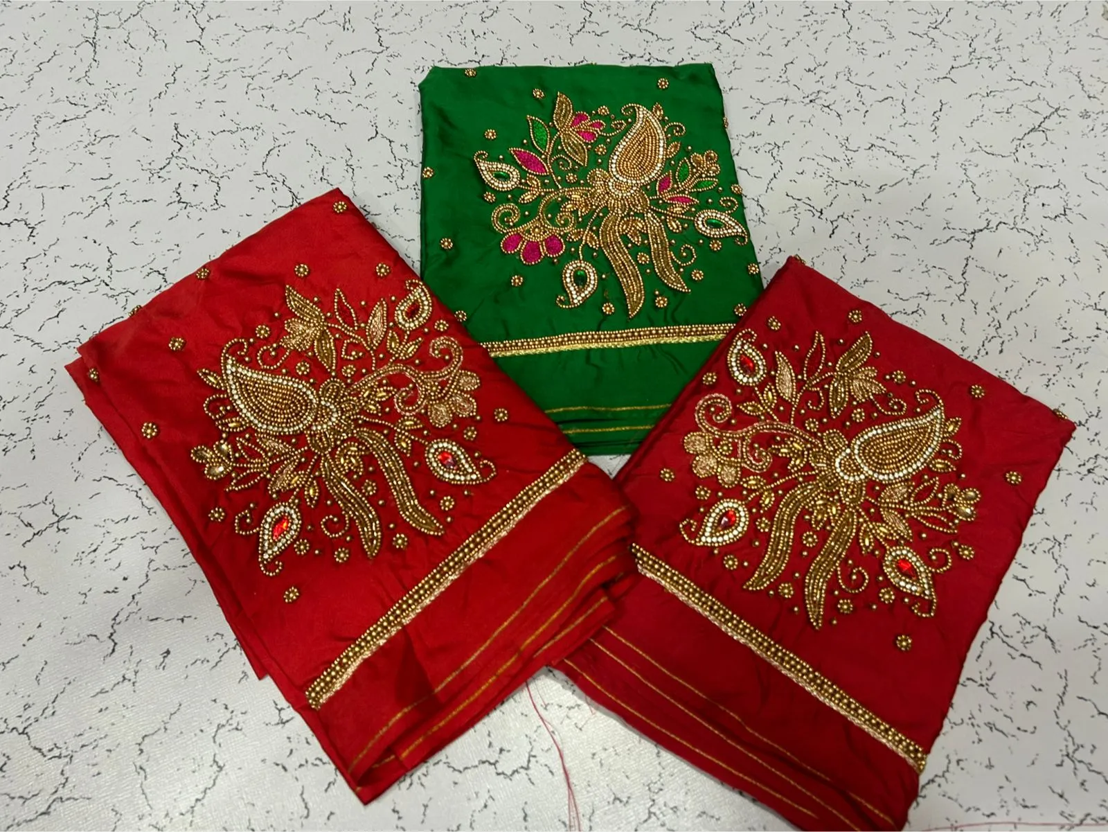 A: We recommend checking our sizing chart for accurate measurements. Measure your bust, waist, and hips to find the best fit for the Maroon Designer Kundan Beads Aari Blouse Stylish & Affordable.