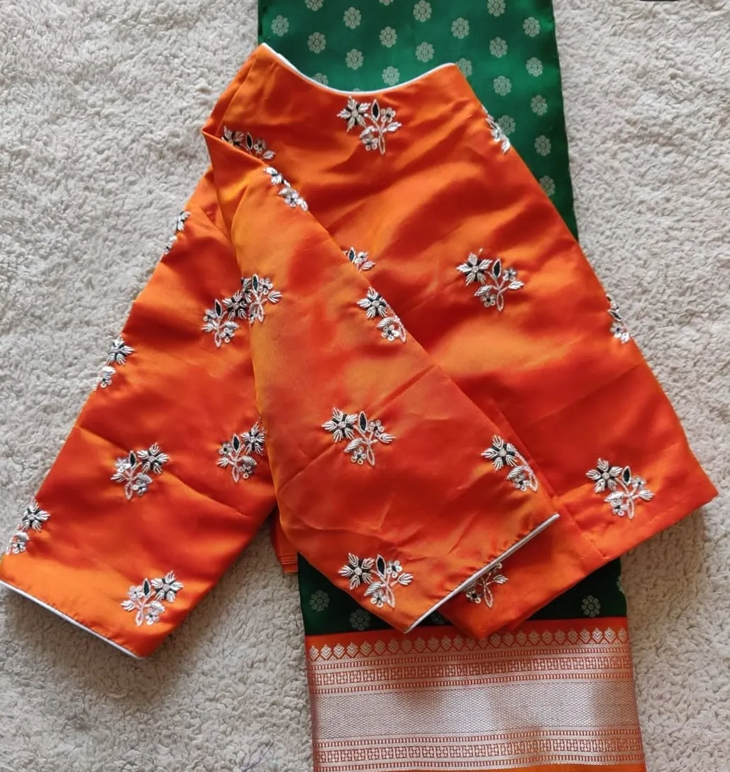 Why Choose Exclusive Orange Silver Handcrafted Maggam Blouse Designer Bridal Edition?