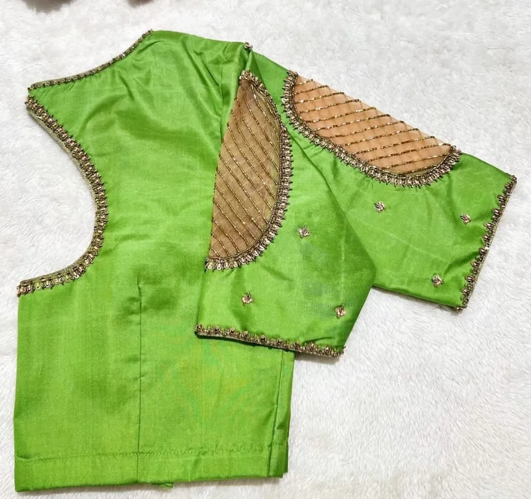 Exclusive Pastel Green Mirror Maggam Blouse Luxury LookBudget Price