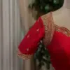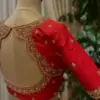 Product Name: Exclusive Red Silk Bridal Blouse – Handcrafted Zardosi, Thread Kundan Aari Work for Muhurtham Special