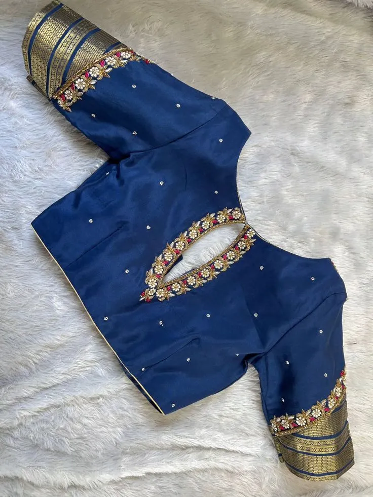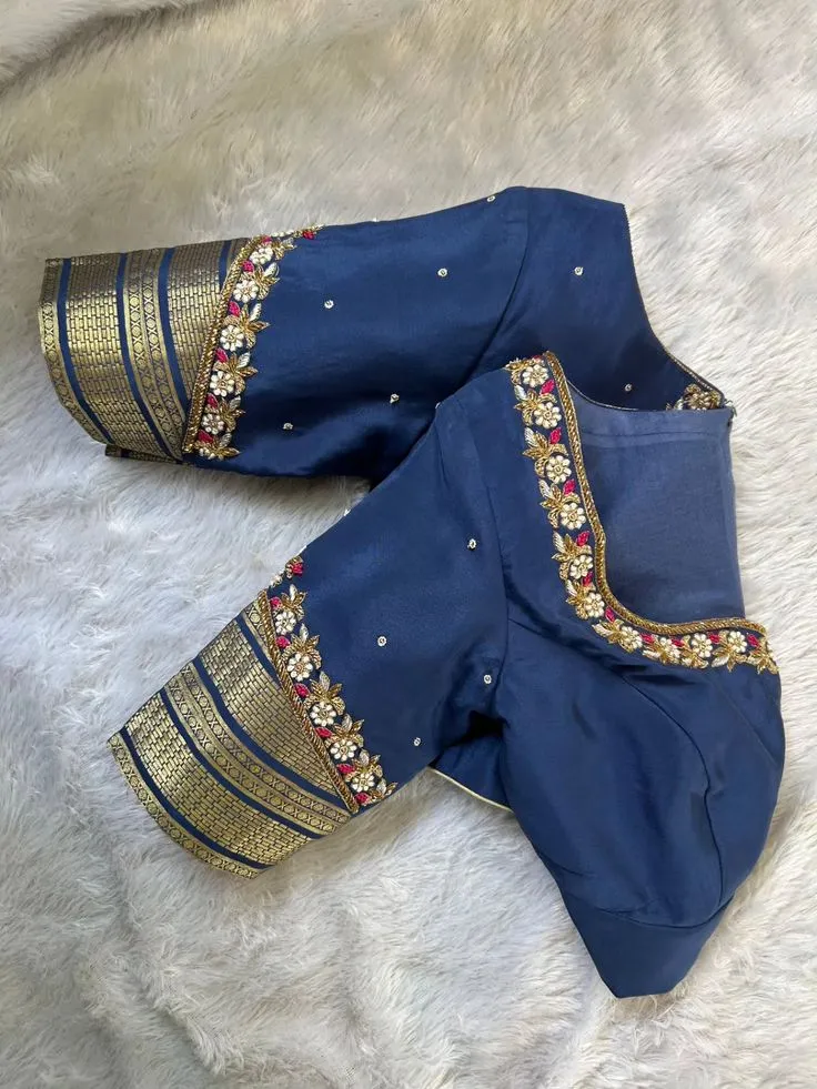 Product Name: Exclusive Royal Blue Maggam Work Blouse Intricate Zardosi Detailing for Brides