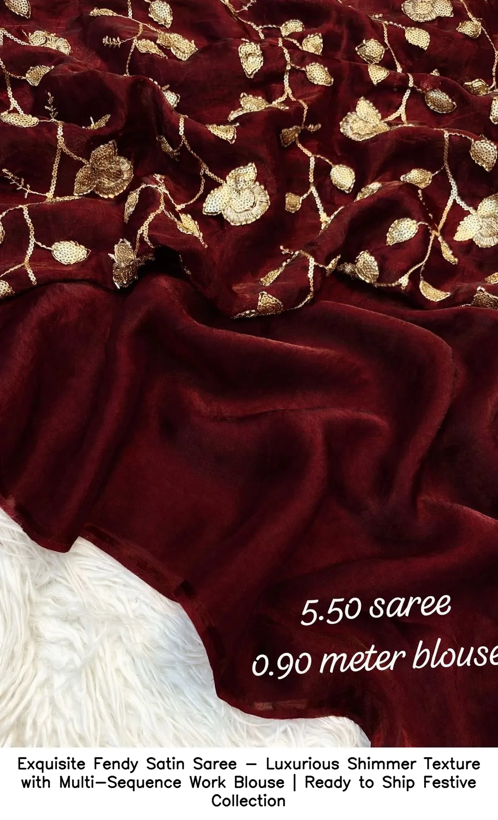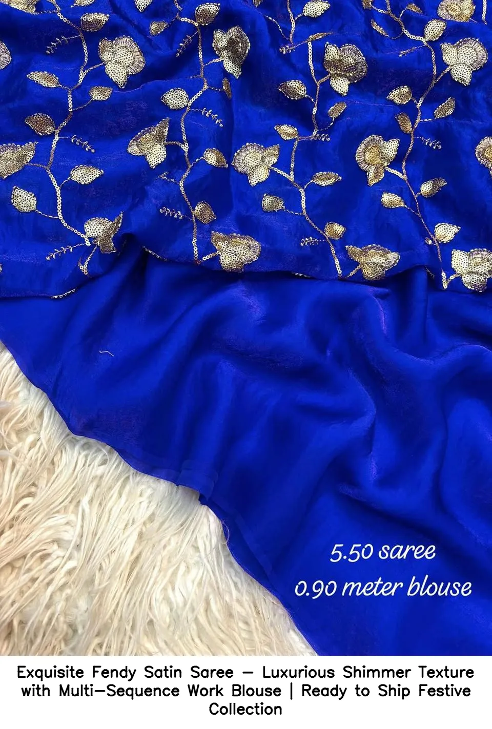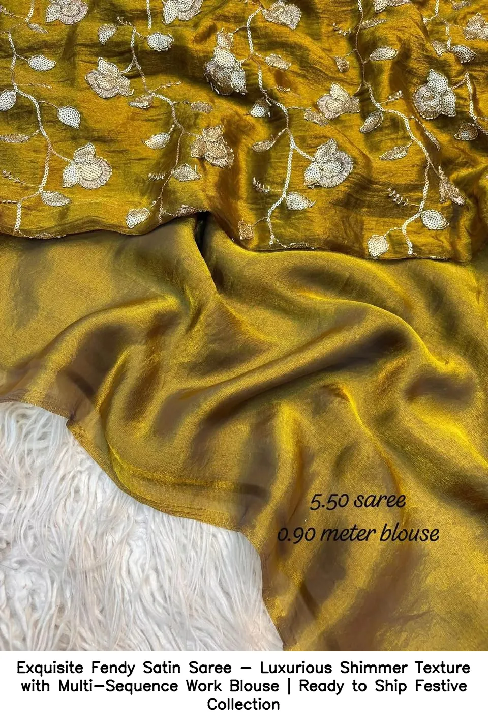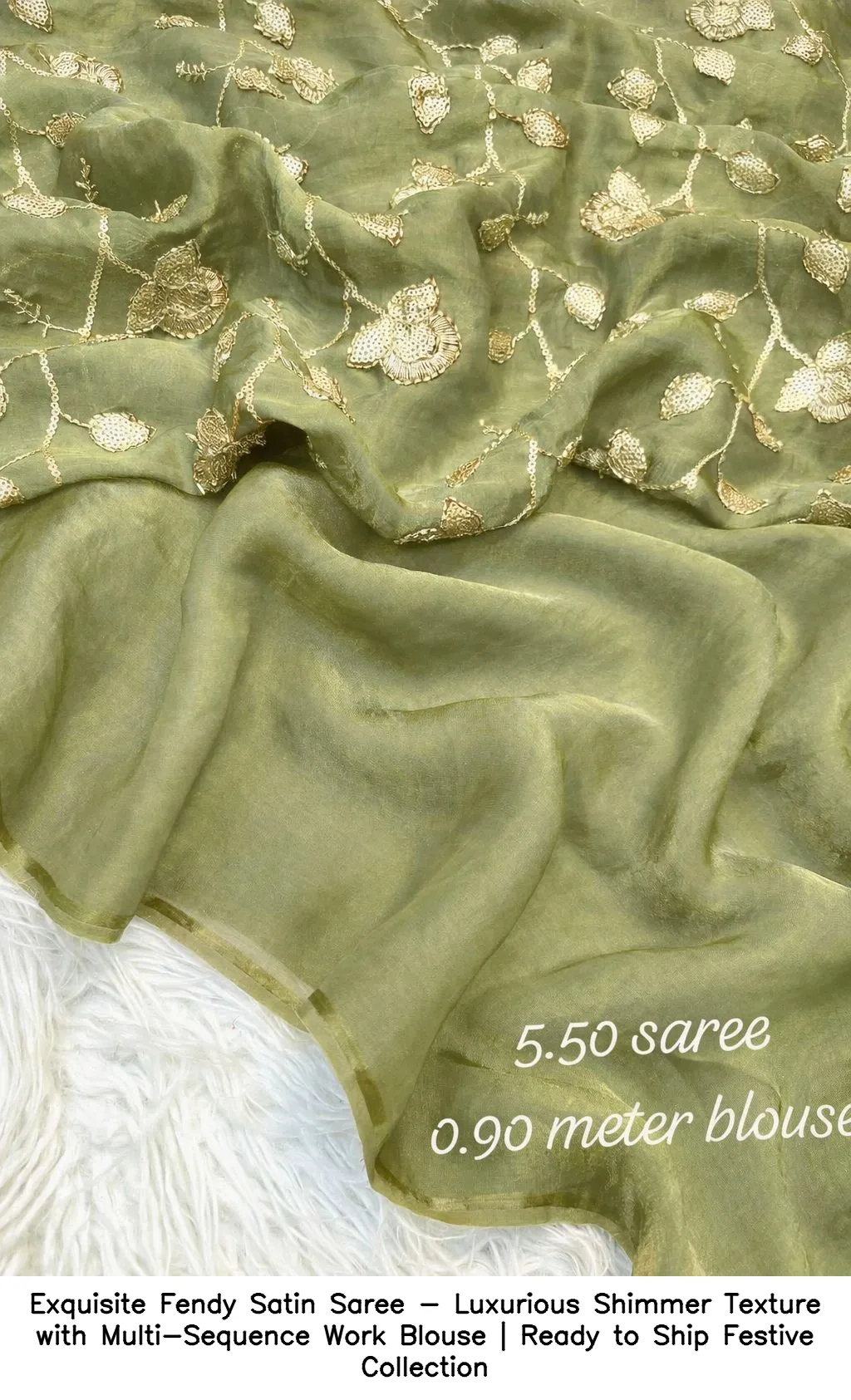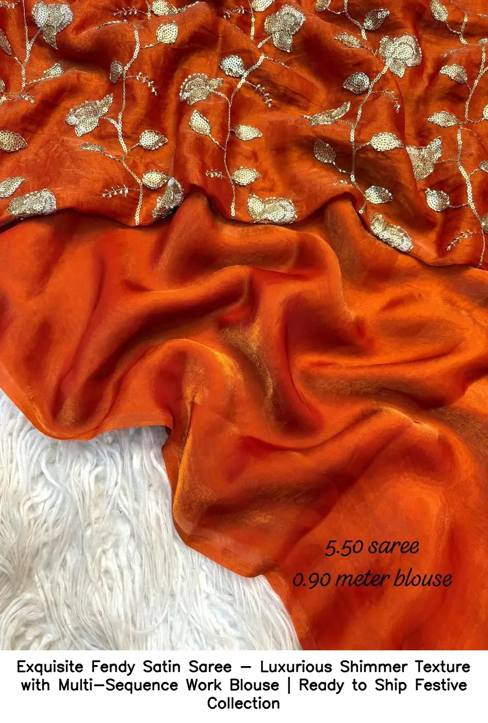 Exquisite Fendy Satin Saree – Luxurious Shimmer Texture with Multi-Sequence Work Blouse | Ready to Ship Festive Collection