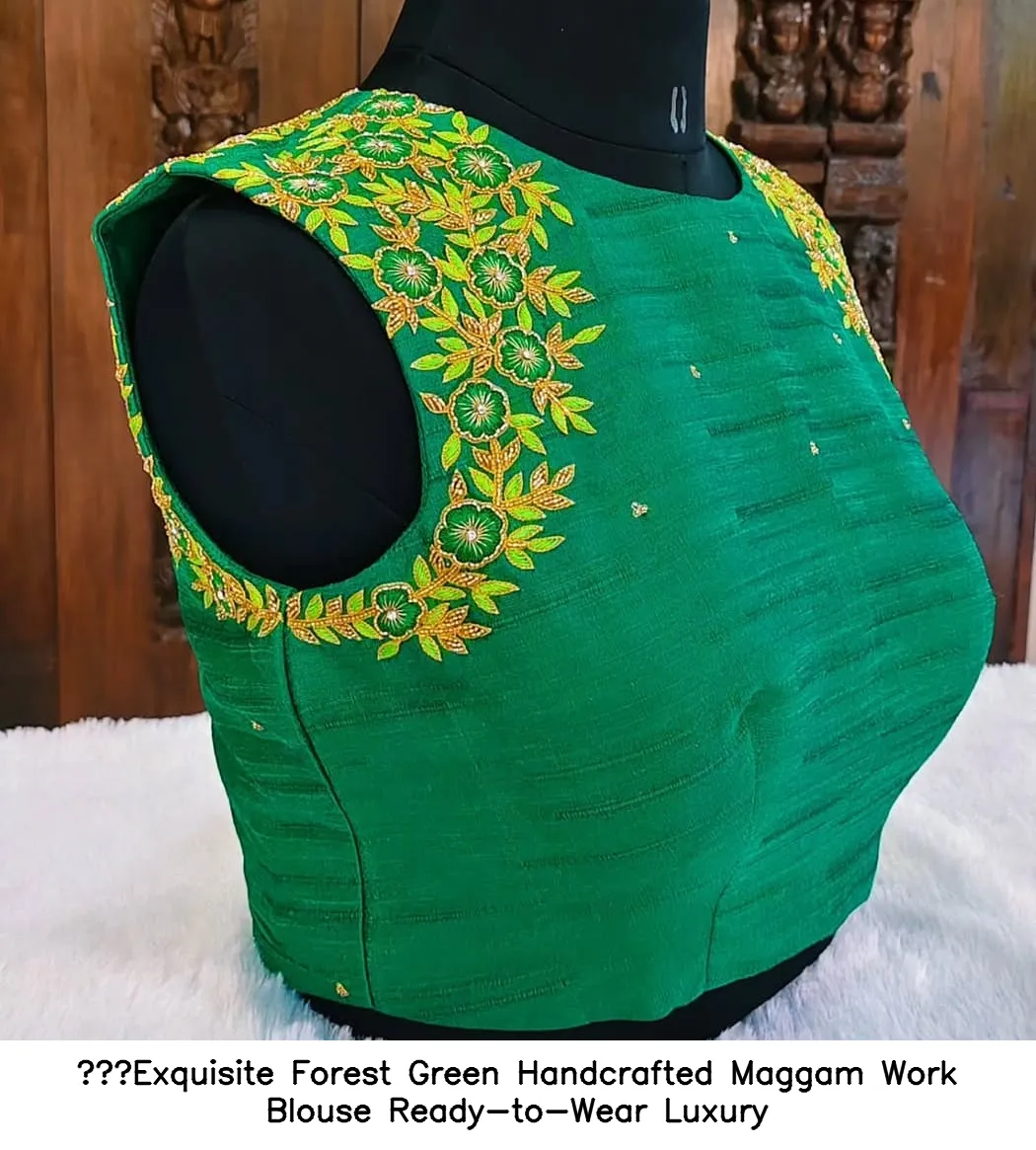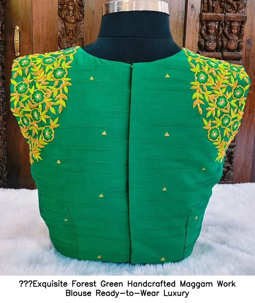 Product Name: ​Exquisite Forest Green Handcrafted Maggam Work Blouse Ready-to-Wear Luxury
