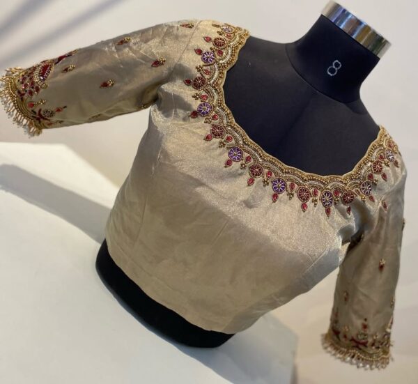 Fine embroidery with expert craftsmanship elevates this blouse to bridal perfection.