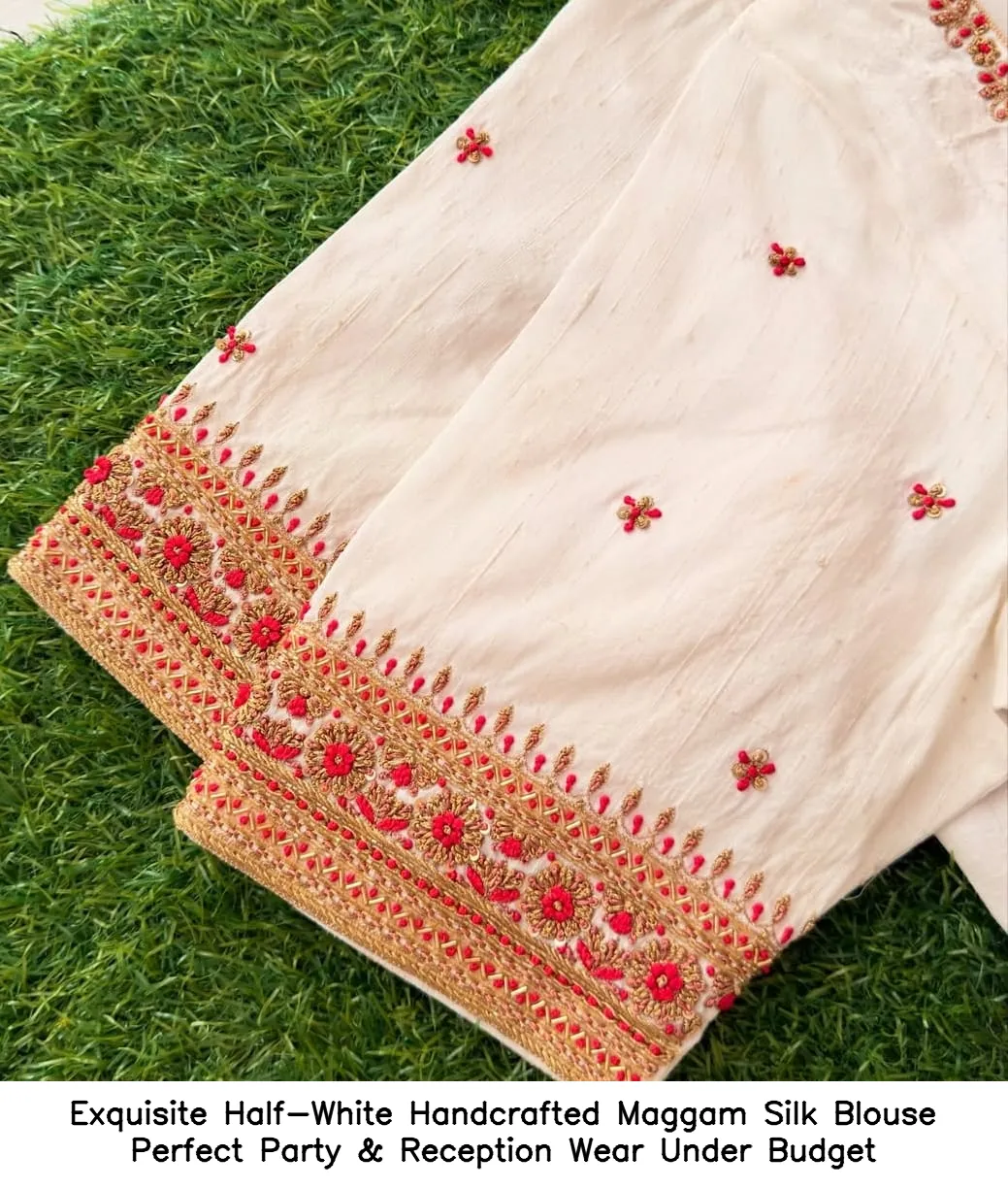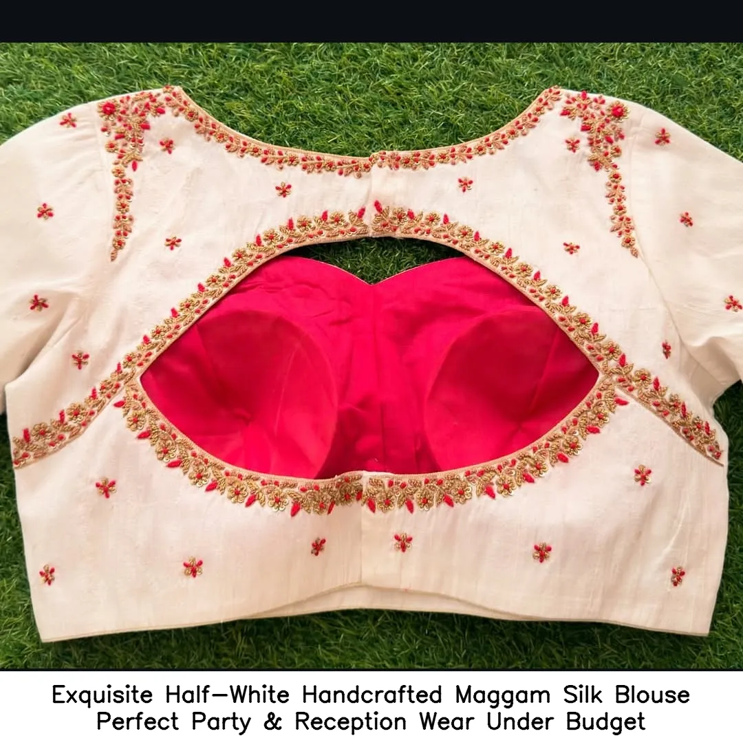 Exquisite Half-White Handcrafted Maggam Silk Blouse – Perfect Party & Reception Wear Under Budget