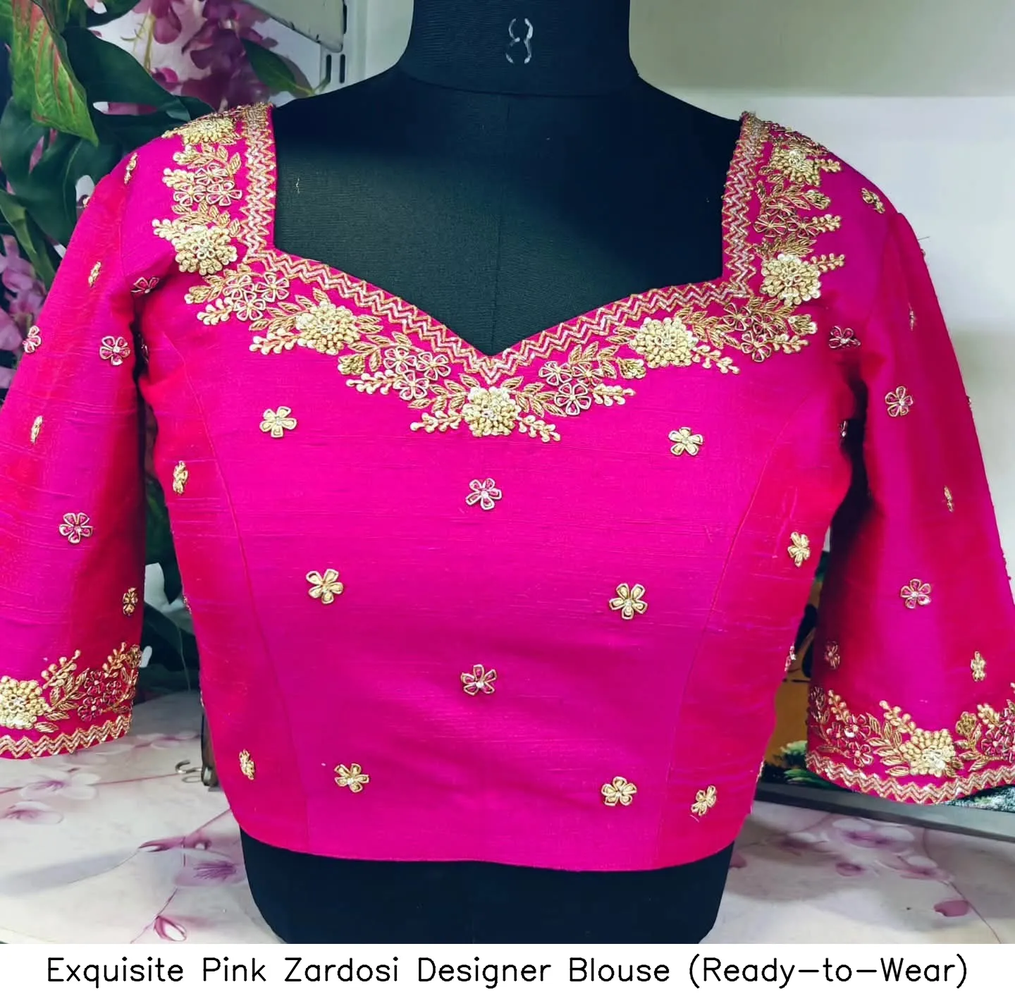 Why Choose Exquisite Pink Zardosi Designer Blouse (Ready-to-Wear)?