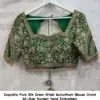 Product Name: Exquisite Pure Silk Green Bridal Muhurtham Blouse – Grand All-Over Kundan Hand Embroidery