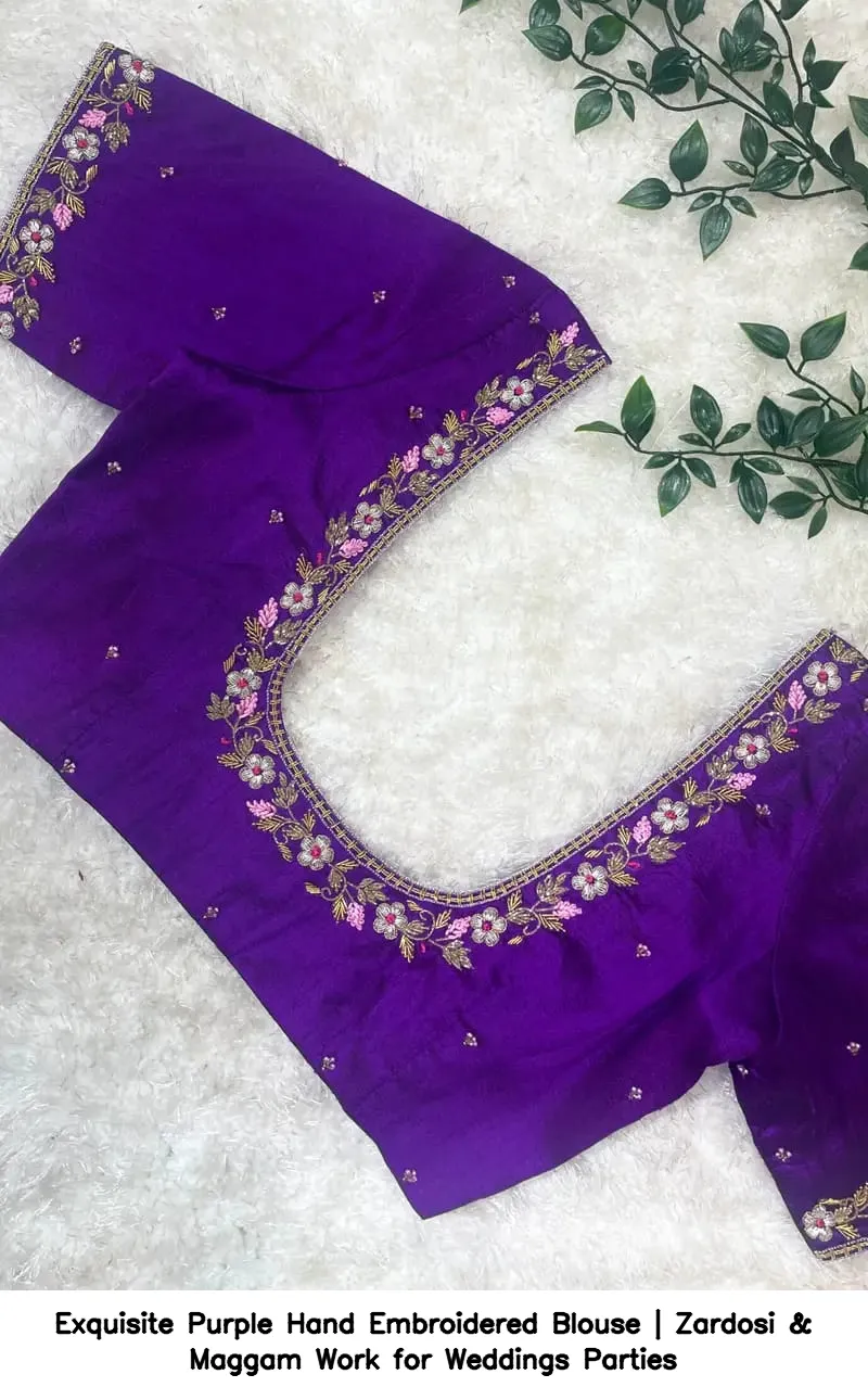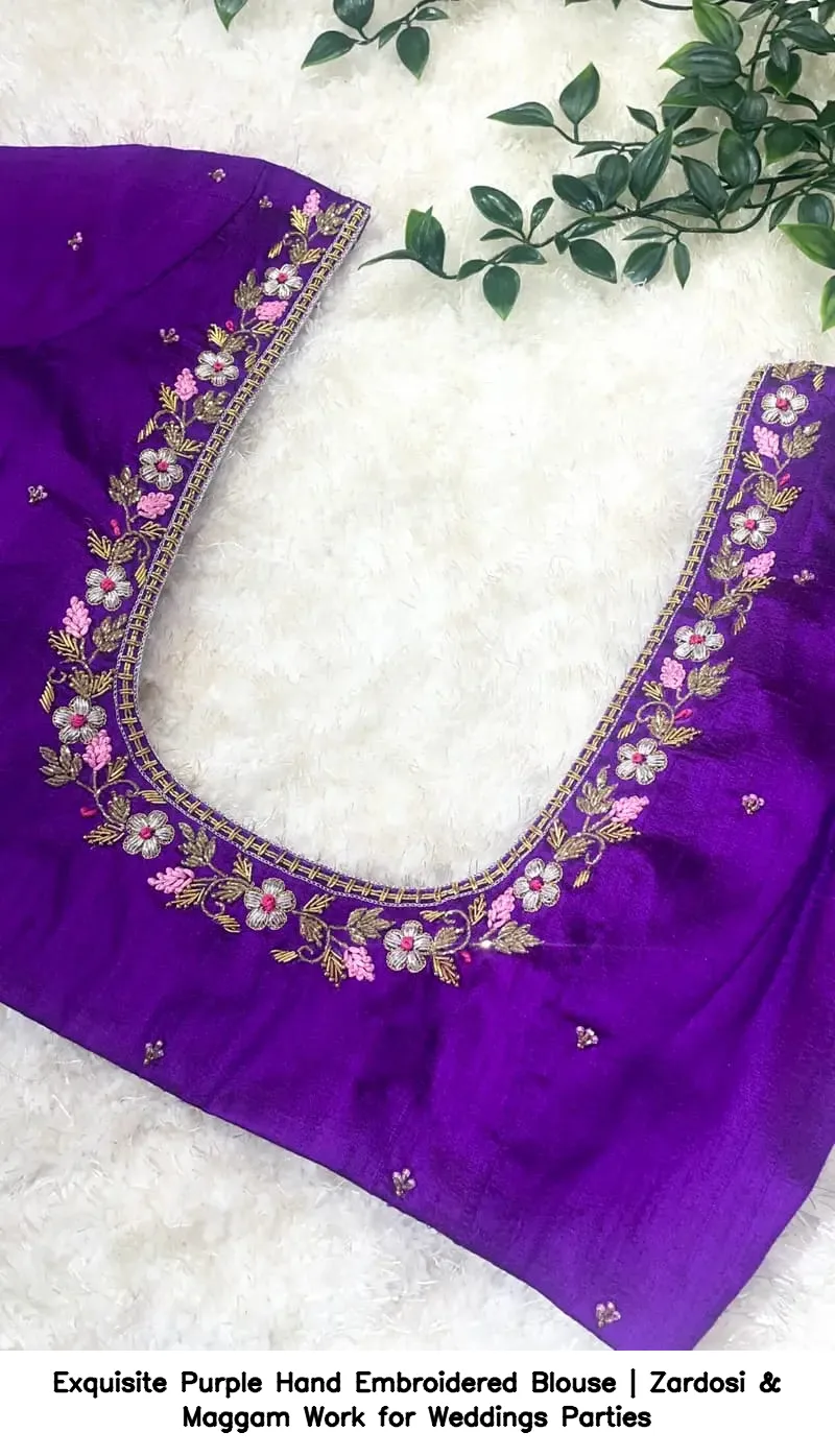 Exquisite Purple Hand Embroidered Blouse | Zardosi & Maggam Work for Weddings Parties Features and Benefits