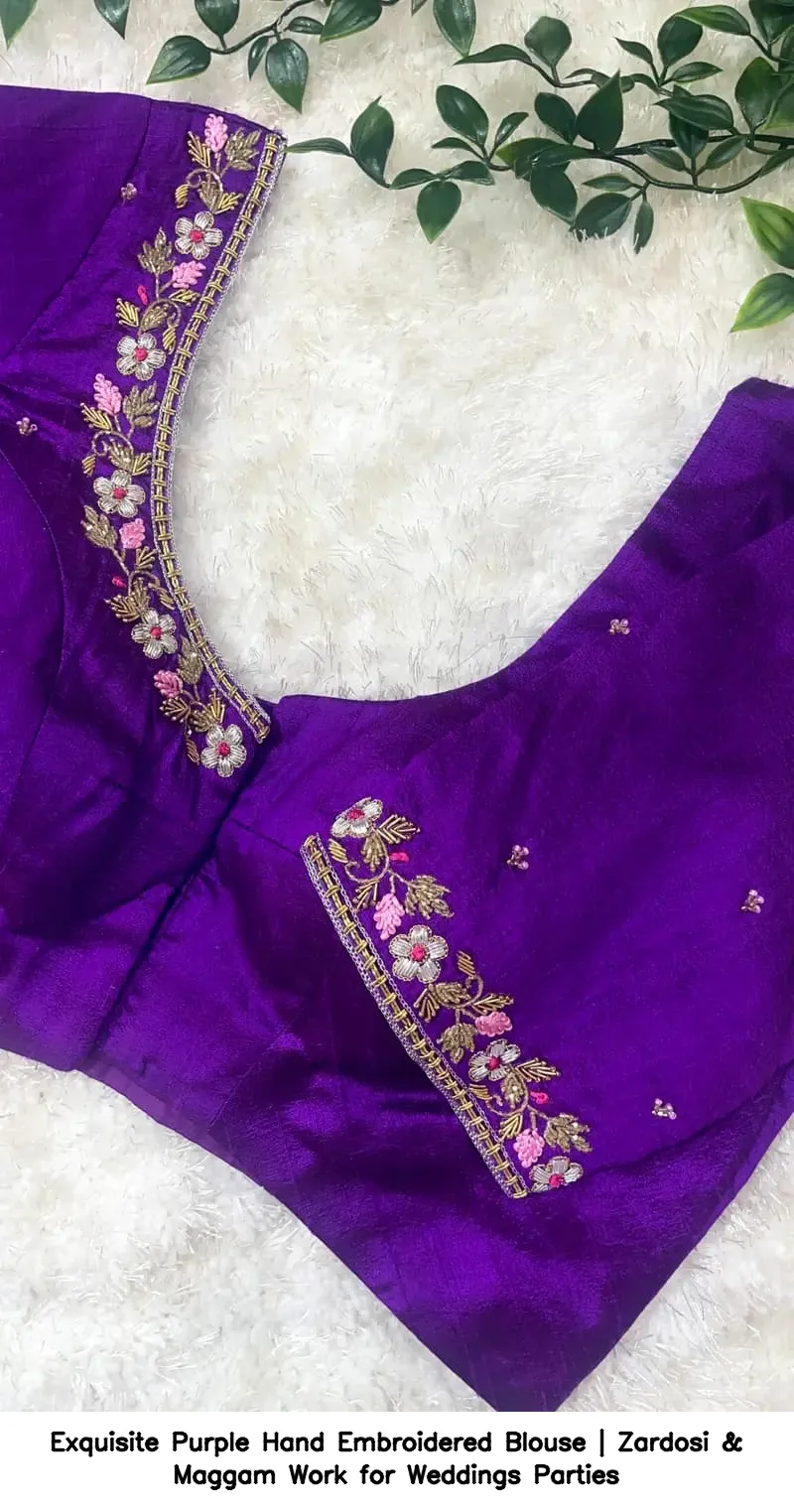 Exquisite Purple Hand Embroidered Blouse | Zardosi & Maggam Work for Weddings Parties is the perfect choice for any festive occasion. This blouse combines elegance with tradition to enhance your wardrobe. Moreover, its unique embroidery makes it stand out at weddings and parties. You will love the feel of the fabric and the attention to detail in the zardosi and maggam work.