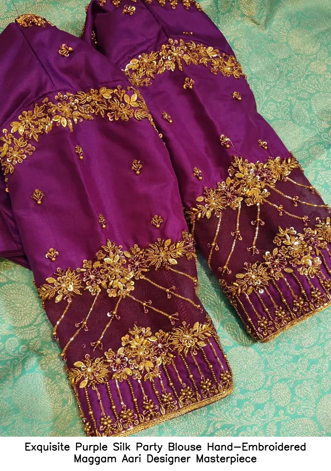​Exquisite Purple Silk Party Blouse – Hand-Embroidered Maggam Aari Designer Masterpiece