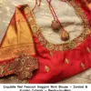 Product Name: Exquisite Red Peacock Maggam Work Blouse – Zardosi & Kundan Cutwork – Ready-to-Wear