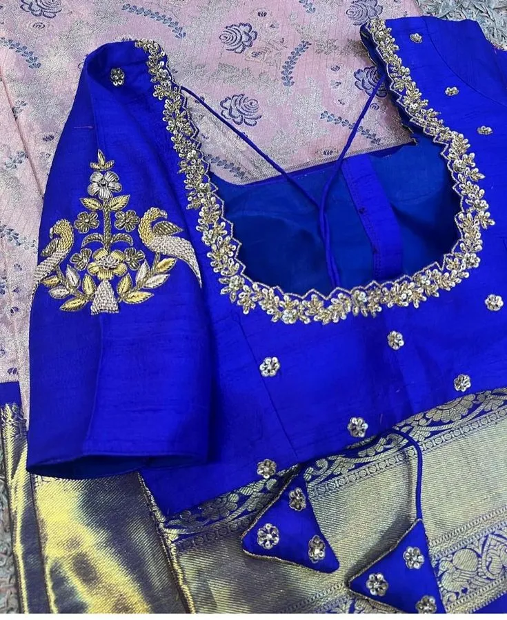 Exquisite Royal Blue Peacock Zardosi Maggam Work Blouse Bridal Elegance Tailored for You
