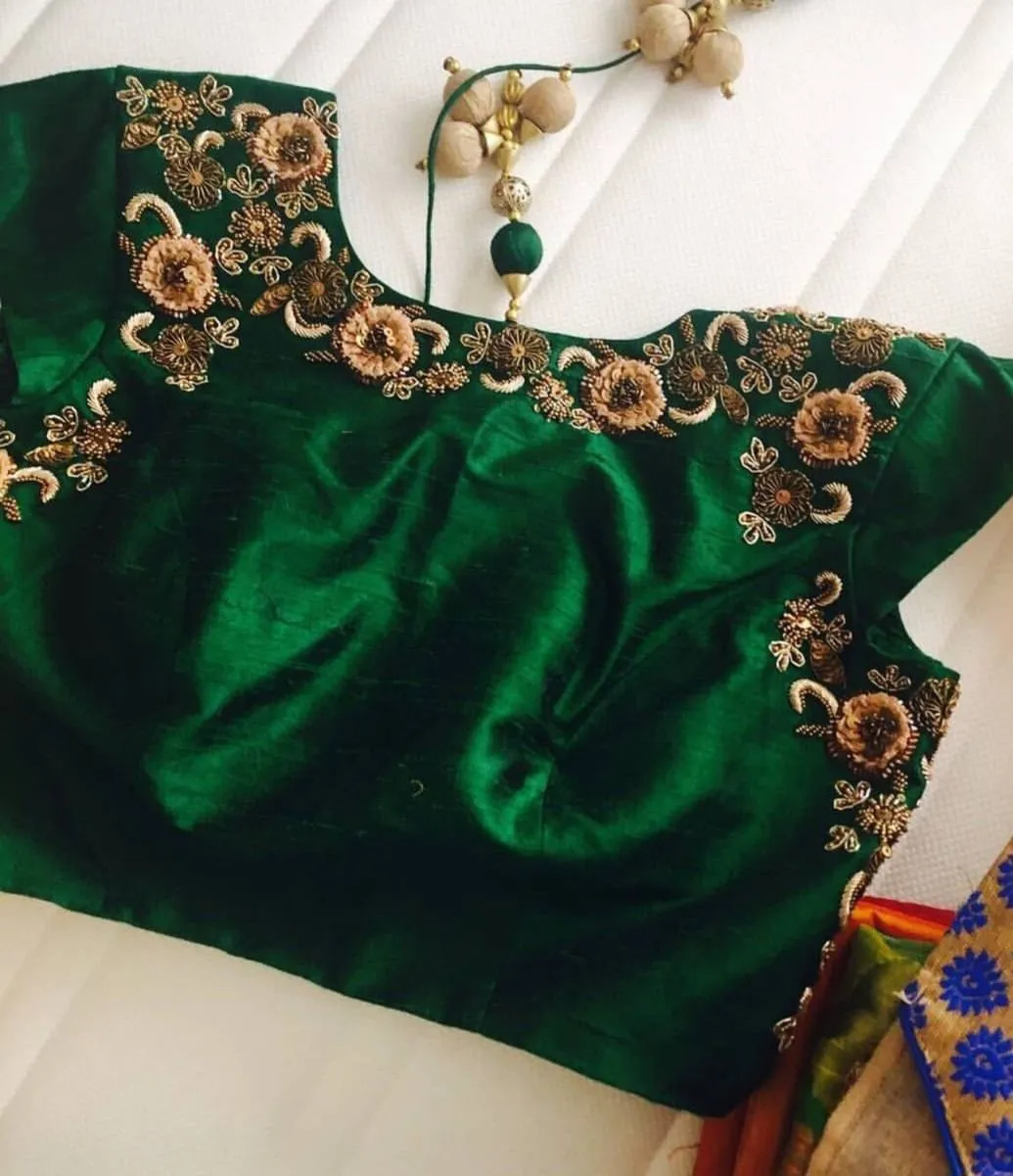 Product Name: Eye-Catching Bottle Green Boat Neck Blouse with Maggam Work Budget-Friendly Fashion