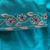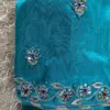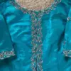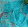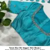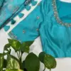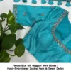 Product Name: Feroza Blue Silk Maggam Work Blouse | Hand-Embroidered Zardosi Neck & Sleeve Design