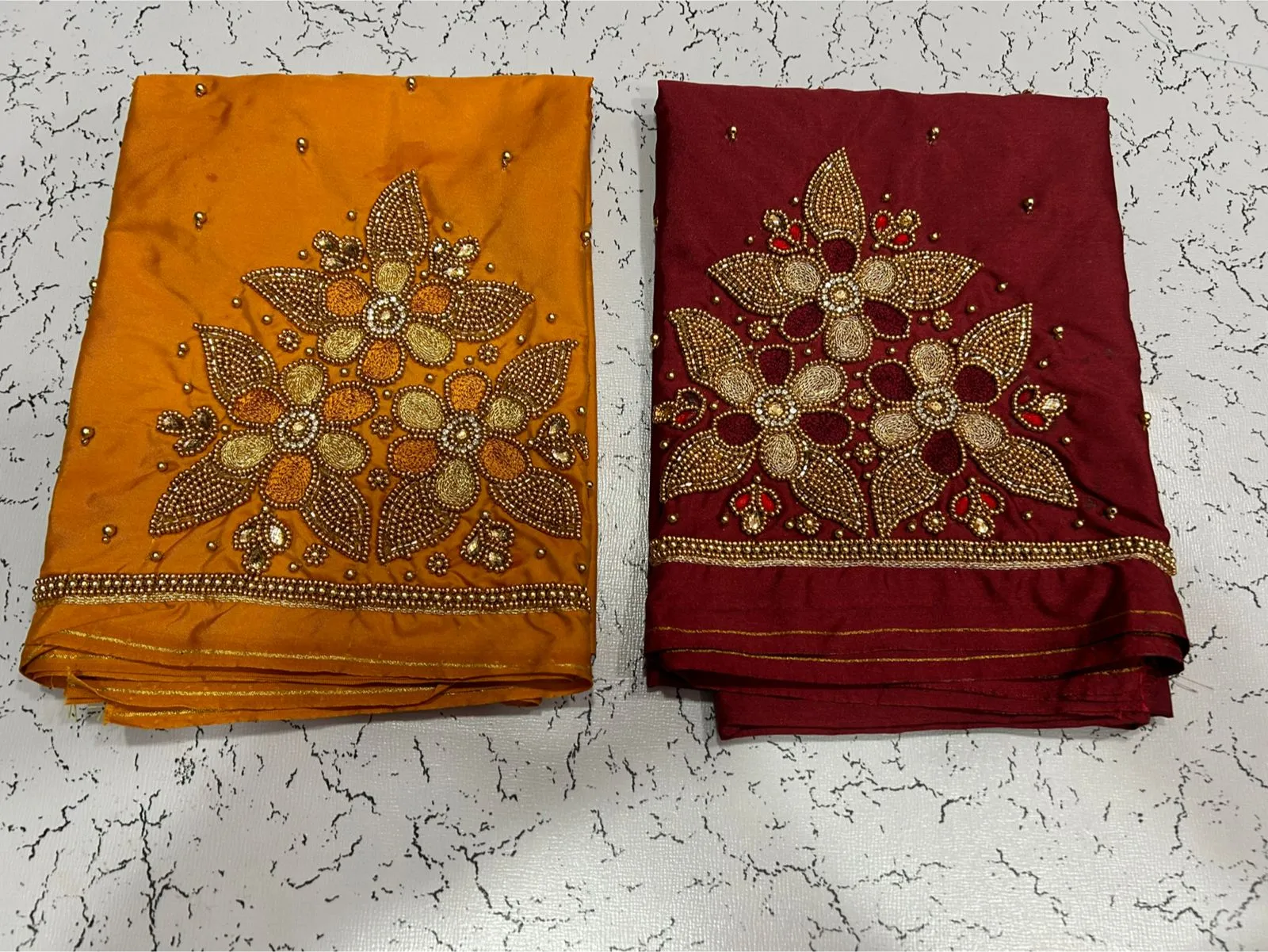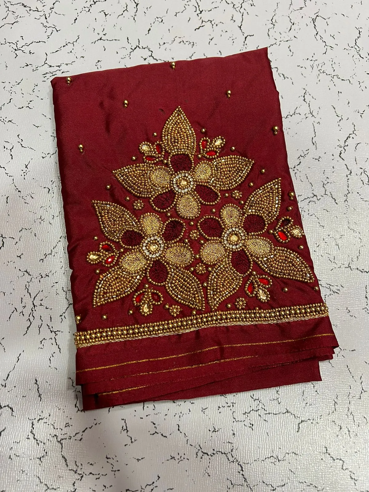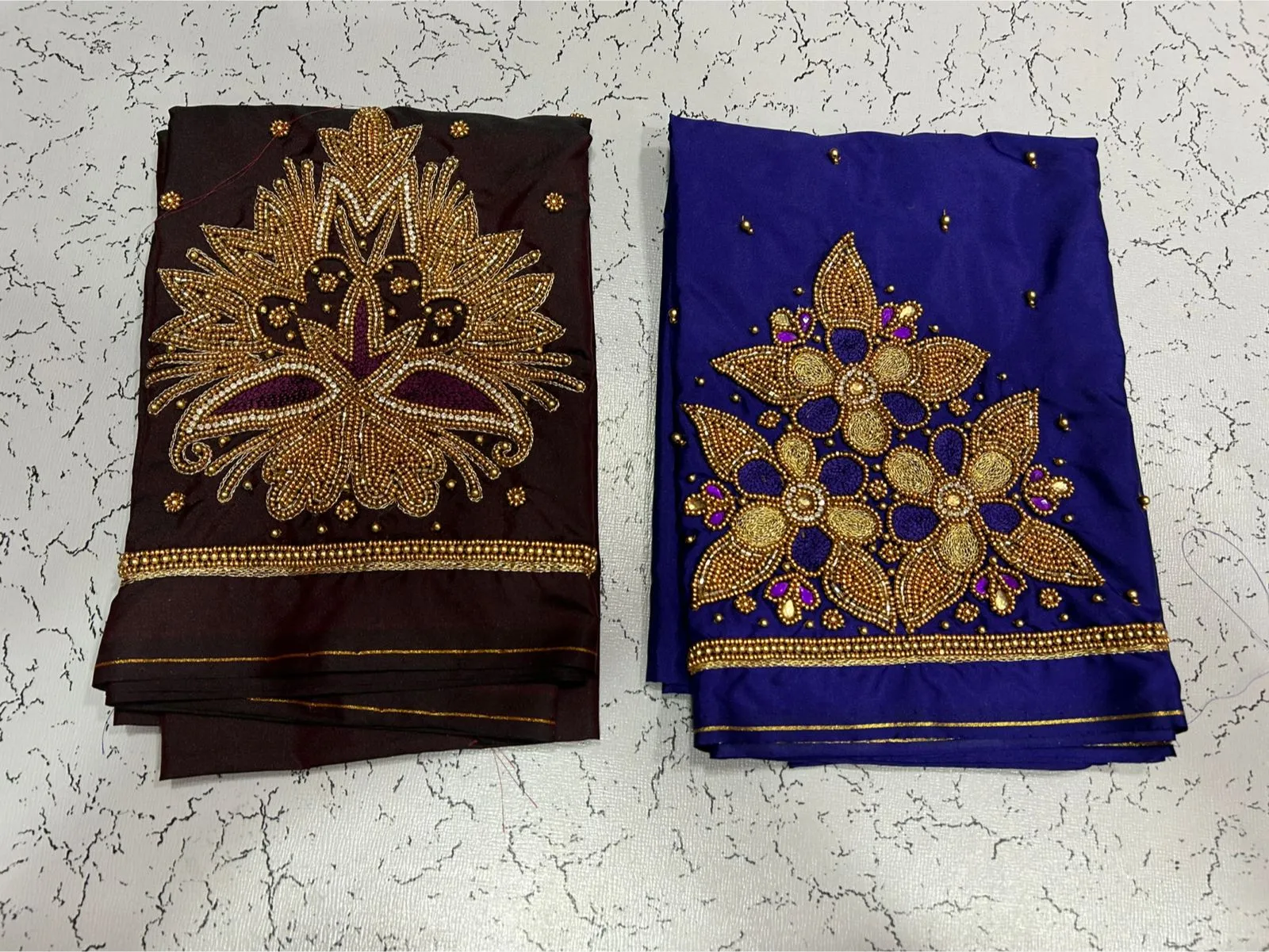 Stunning Raw Silk with Aari Work blouse. Crafted for wedding and festive wear, pairs beautifully with silk sarees and lehengas.