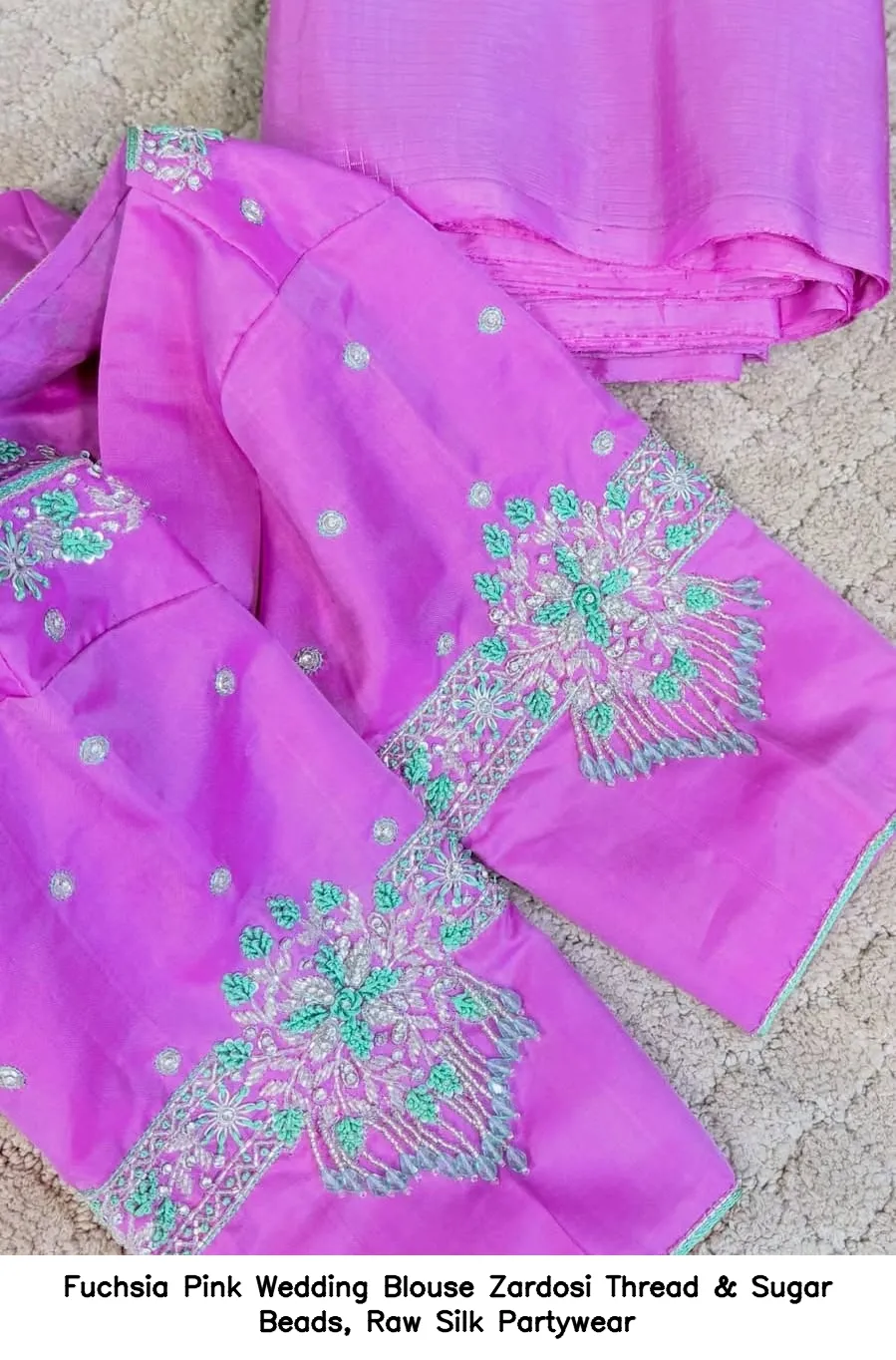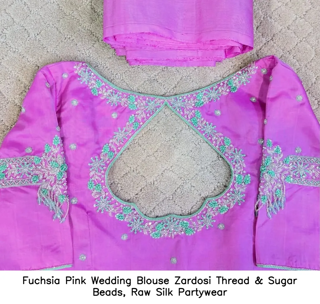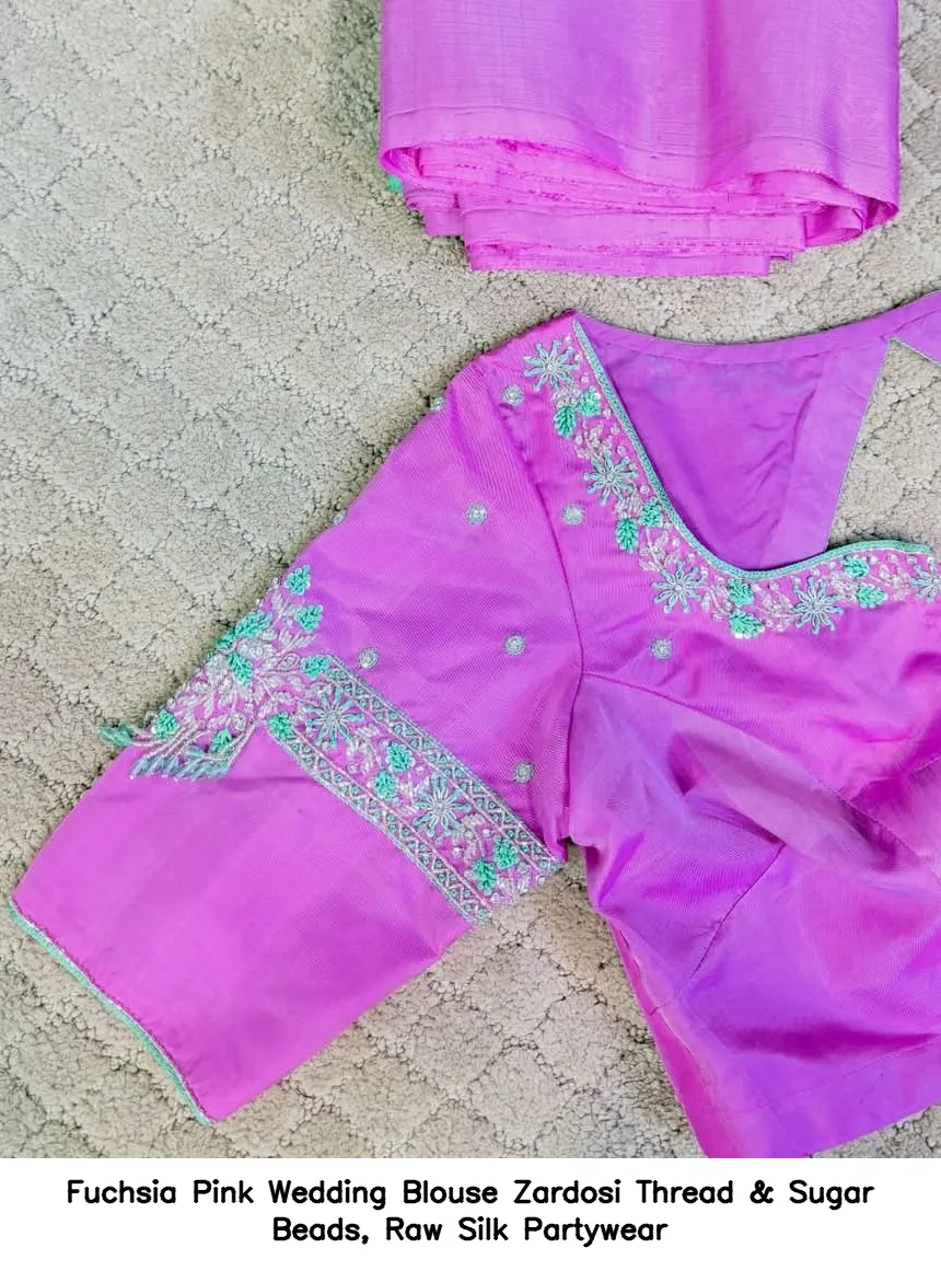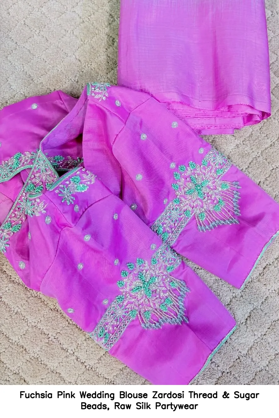 Why Choose Fuchsia Pink Wedding Blouse – Zardosi Thread & Sugar Beads, Raw Silk Partywear?