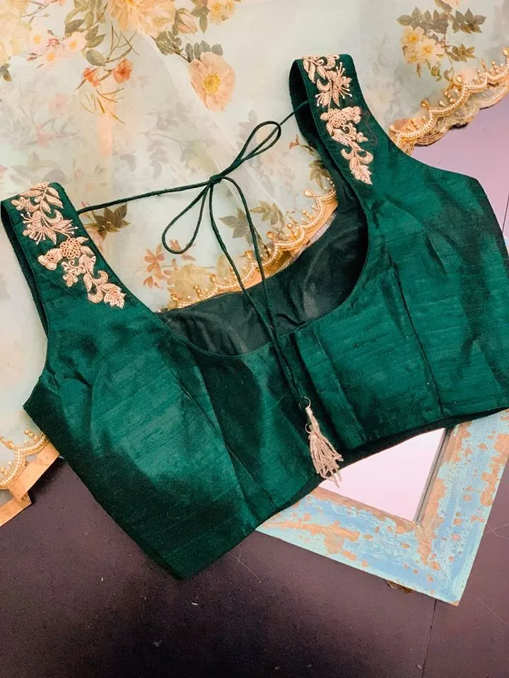 Glamorous Bottle Green Maggam Work Blouse Modern Sleeveless Bridal Edition